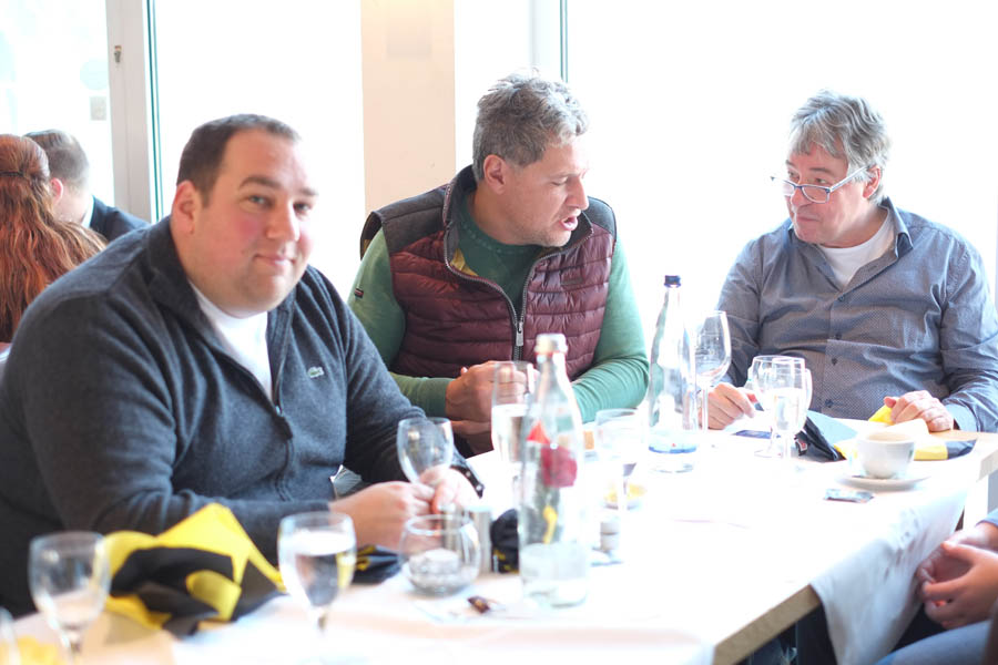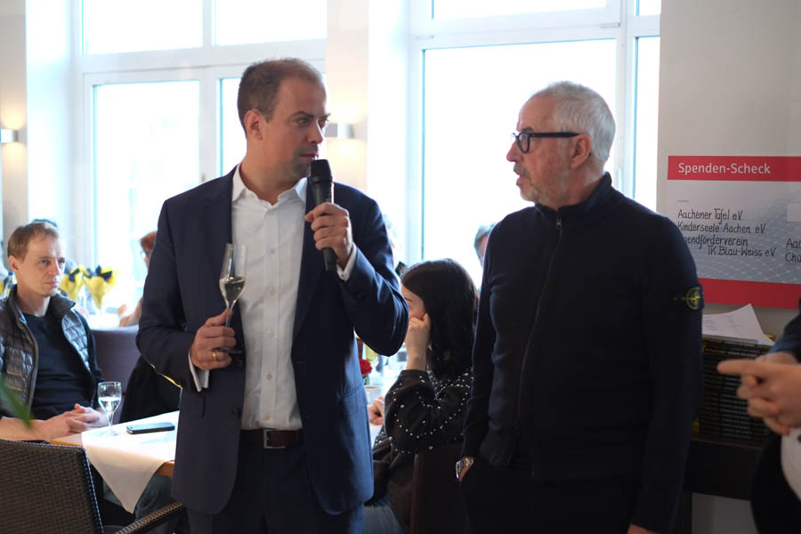 Bei einem entspannten Brunch im Restaurant des Tennisclubs TK Blauweiß Aachen griffen auch Trainer Fuat Kilic, Geschäftsführer Martin vom Hofe und Dr. Dirk Kall, als Aufsichtsrat von Alemannia Aachen, zum Mikrofon. Letztgenannter blickte auf die finanziellen Aufgaben im Jahr 2019. „Es sieht zum 31.12. besser aus, als geplant – auch dank des BVB-Spiels im Oktober, das wir nicht in unserer Jahresplanung hatten. Das hilft uns die Zuschauerzahlen, die etwas unter der Kalkulation liegen, auszugleichen“, so Kall. Die größte Herausforderung des Clubs liege jetzt in der Planung der kommenden Saison. „Die Gespräche laufen.“ Allerdings müssten noch weitere Sponsorenverträge unterschrieben werden, das sei das Leid der vierten Liga, wo die Fernsehgelder ausblieben. Geschäftsführer Martin vom Hofe ergänzte, dass die TV-Übertragung von Live-Spielen vom Tivoli ein Risiko darstelle, weil dadurch bei Spielen gegen Top-Gegnern, wie Essen, Wuppertal oder Oberhausen, Zuschauer im Stadion ausblieben. Das sei ein Problem in der Kalkulation von Zuschauerzahlen. In dem Zusammenhang bedankte sich der Aufsichtsrat bei den vielen kleinen und mittleren Sponsoren, die dem Verein in den vergangenen Jahren treu geblieben seien. „Wir wollen nach oben schauen und uns mit einer sauberen Finanzplanung weiterentwickeln.“