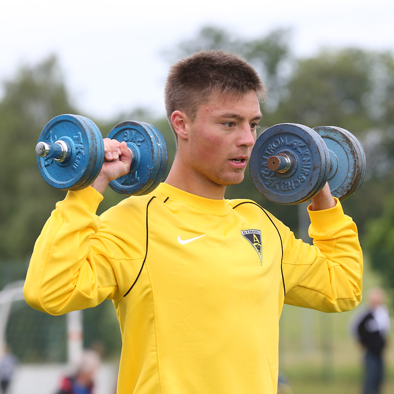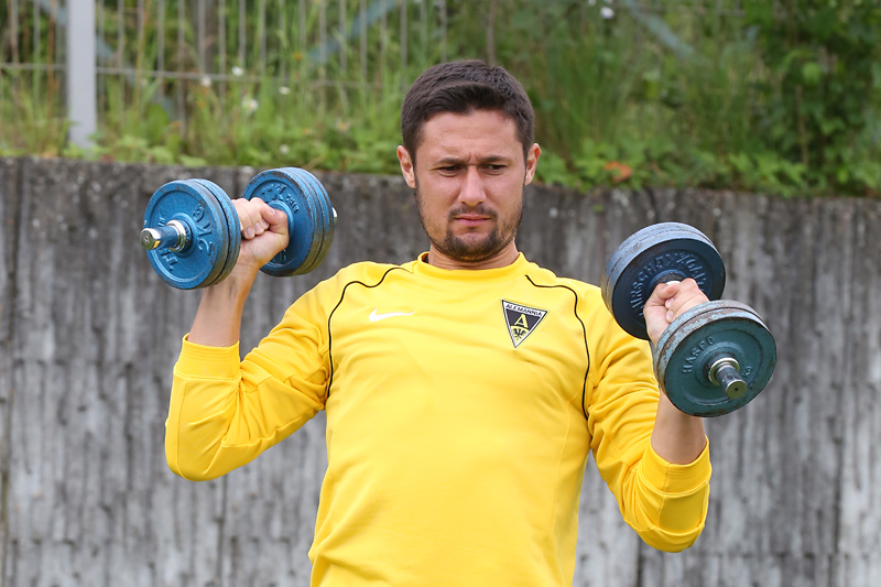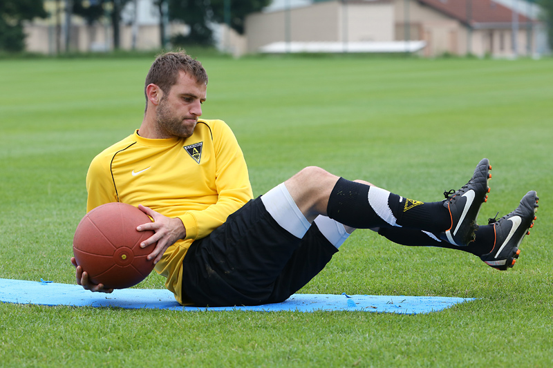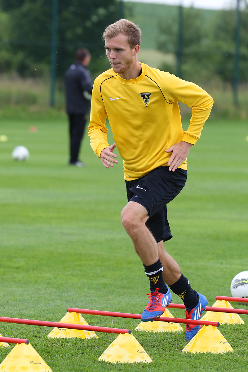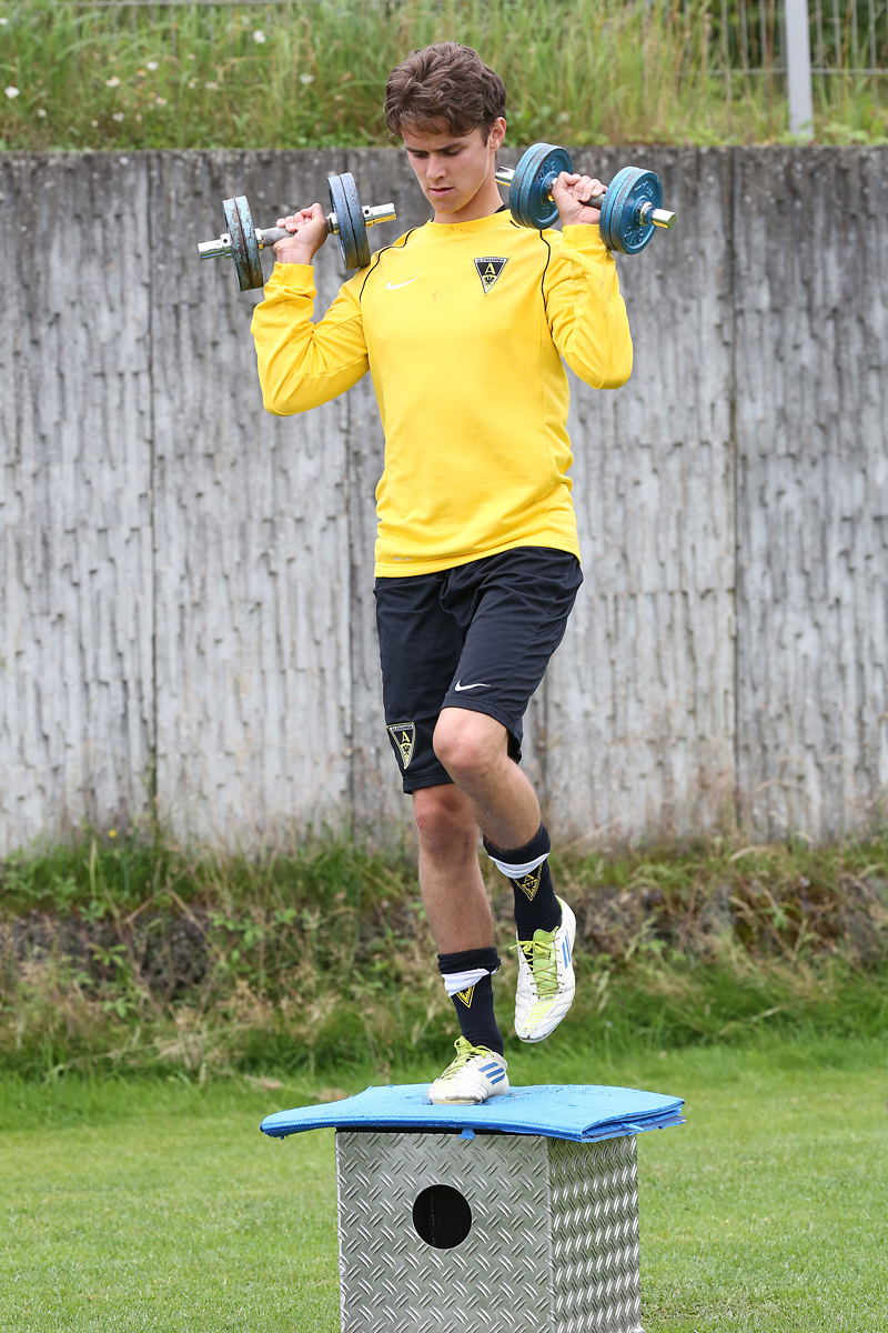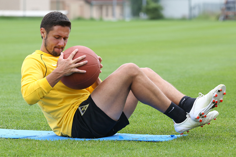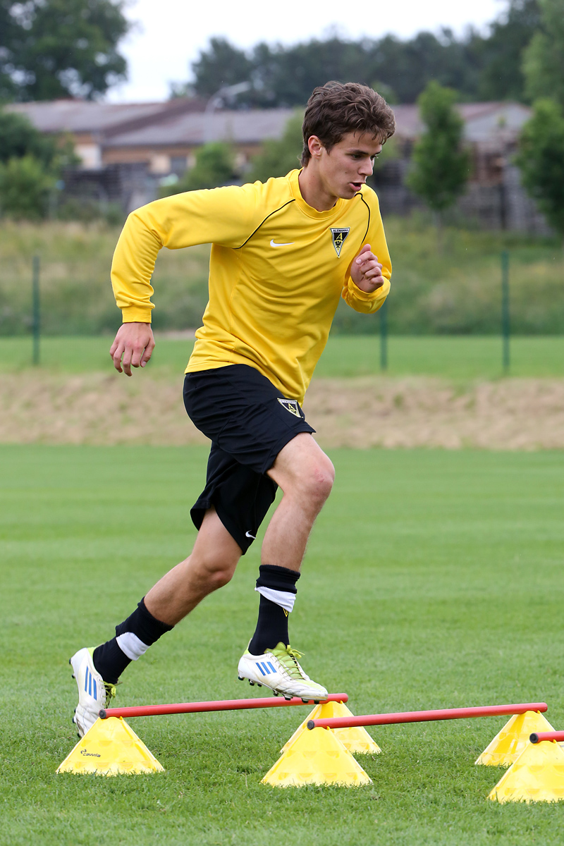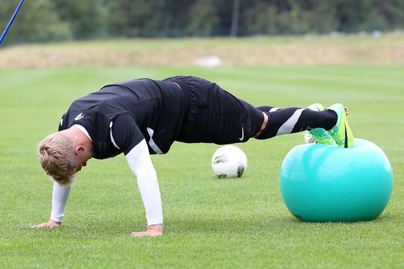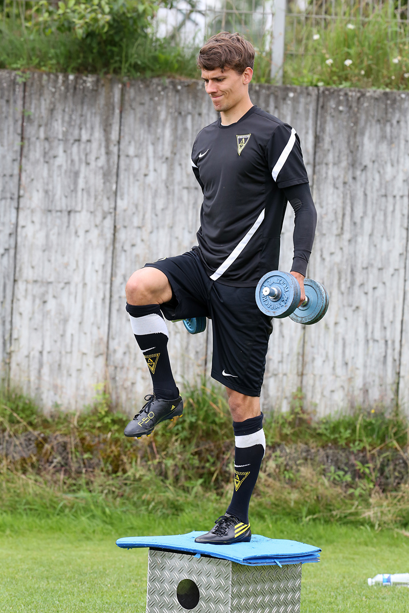 Seine Tempodribblings fallen dem Beobachter unmittelbar ins Auge. Es sieht fast schon leichtfüßig aus, wie „Ötzi“ auf dem Platz unterwegs ist. Und das, obwohl die Mannschaft in diesen Tagen ordentlich ins Schwitzen kommt. Morgens vor dem Frühstück werden die Laufschuhe geschnürt, um 10:30 Uhr steht die erste Einheit auf dem Platz an, um 16:30 Uhr bittet das Trainerteam zur dritten Einheit am Tag. Das Programm ist straff, die Intensität hoch: Zirkeltraining, kleinere Spielformen und Torschusstraining standen am Montag auf dem Plan. Kein Wunder, dass die Beine bei den meisten derzeit schwer sind. Dementsprechend haben Alemannias Physiotherapeuten, deren Massagebänke von morgens bis abends belegt sind, momentan alle Hände voll zu tun.