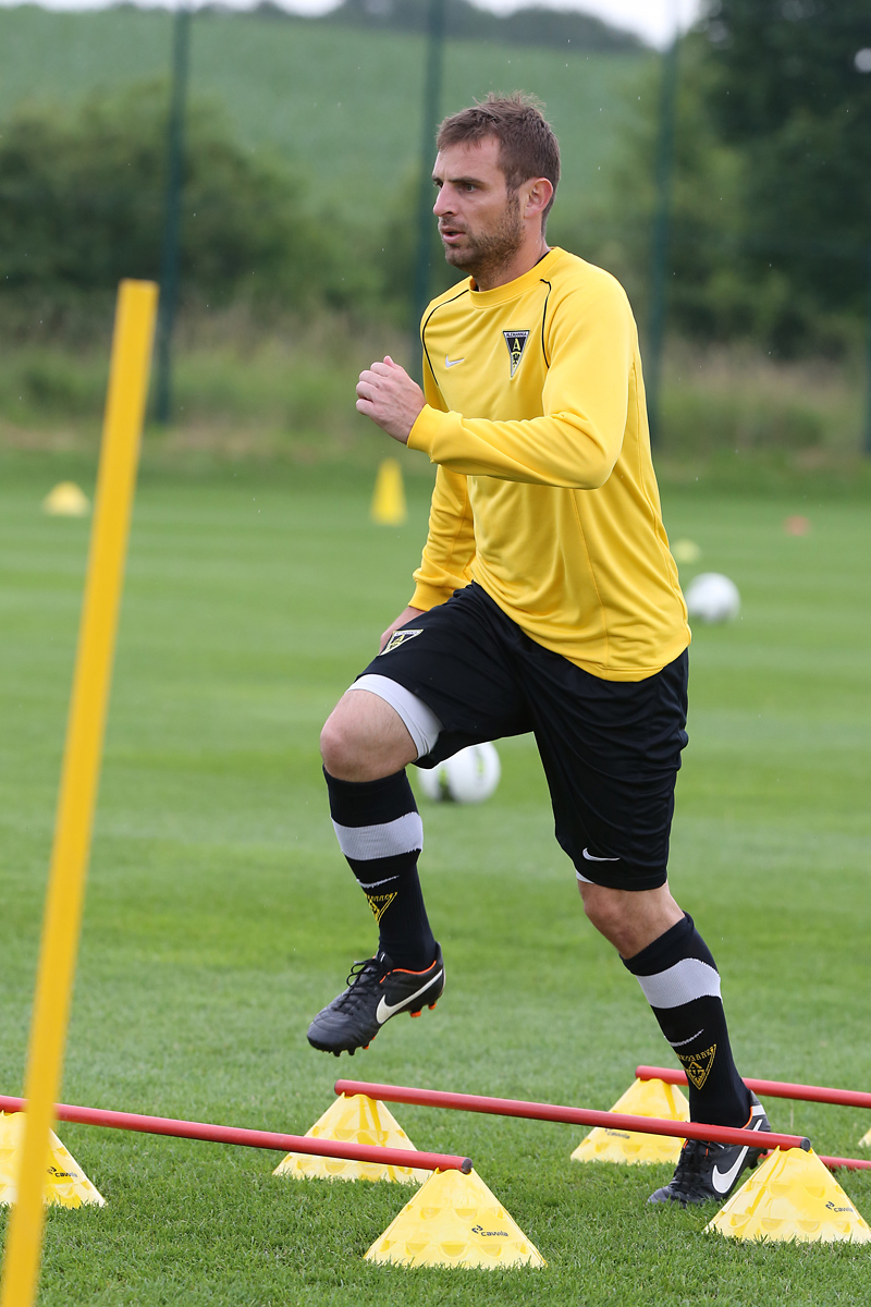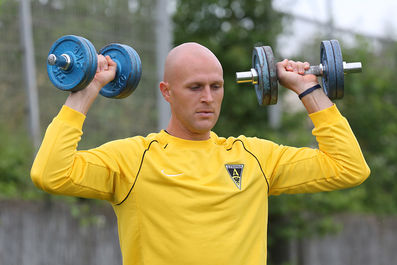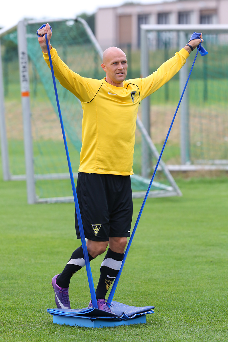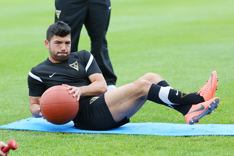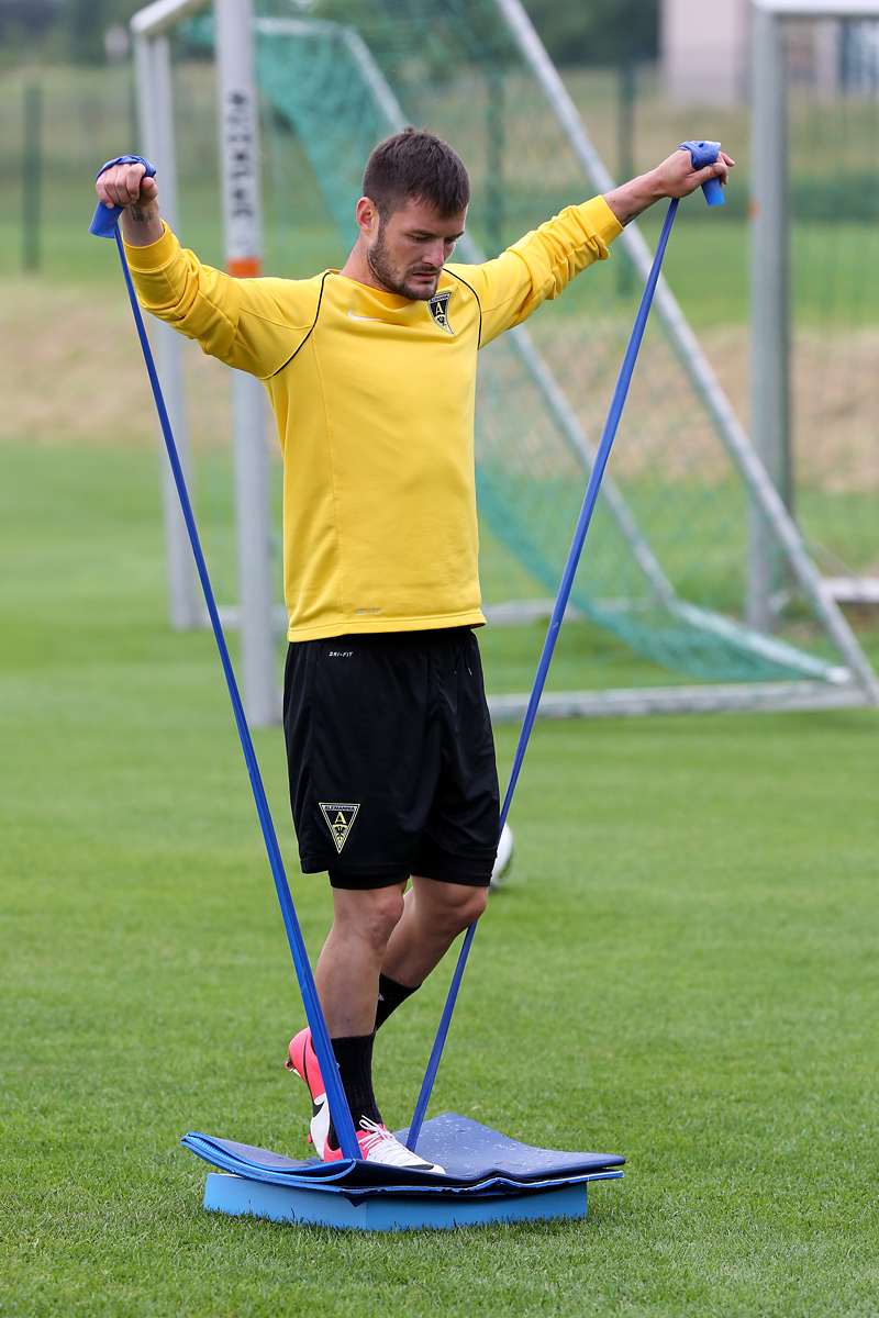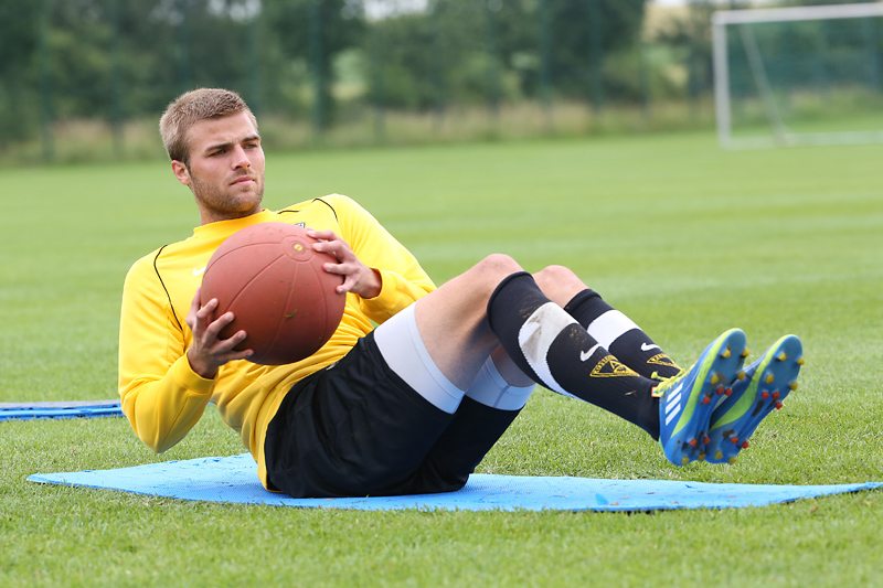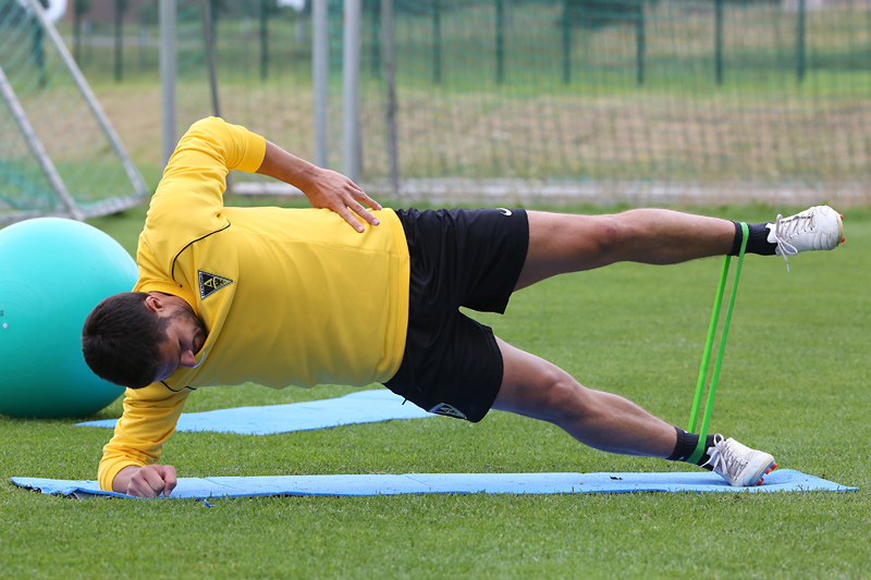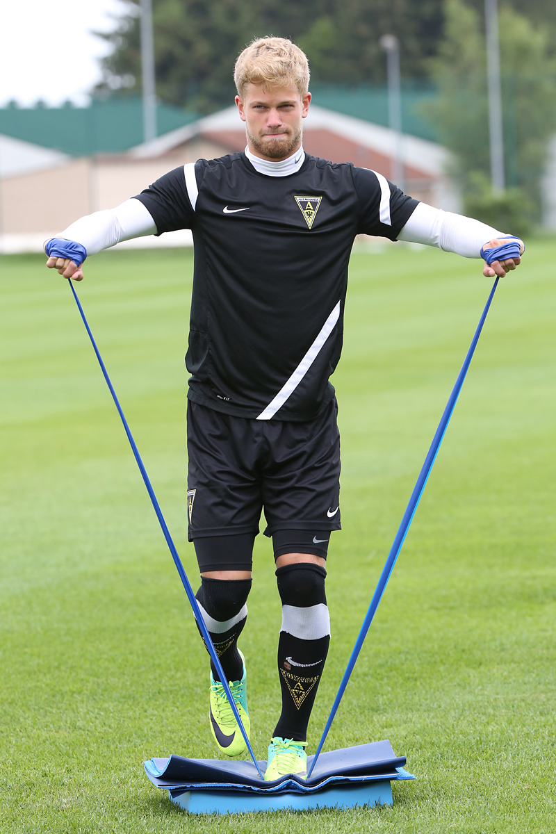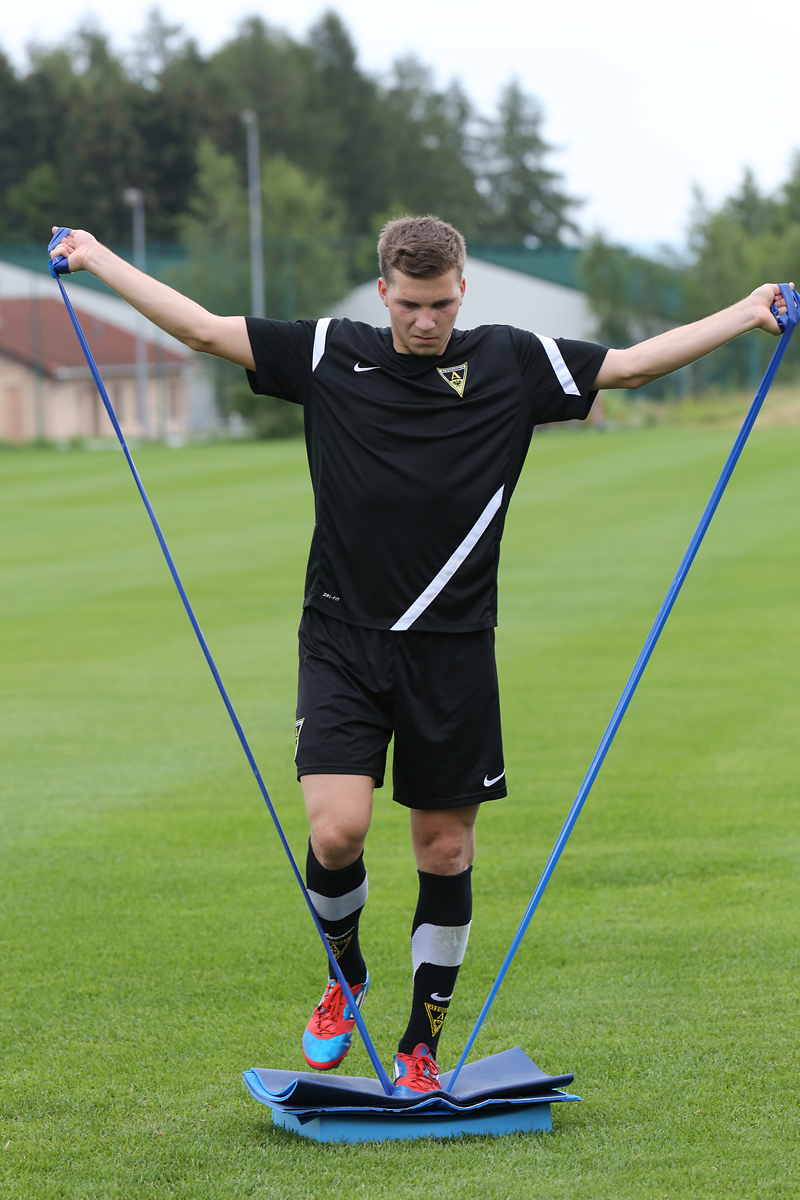 Seine Tempodribblings fallen dem Beobachter unmittelbar ins Auge. Es sieht fast schon leichtfüßig aus, wie „Ötzi“ auf dem Platz unterwegs ist. Und das, obwohl die Mannschaft in diesen Tagen ordentlich ins Schwitzen kommt. Morgens vor dem Frühstück werden die Laufschuhe geschnürt, um 10:30 Uhr steht die erste Einheit auf dem Platz an, um 16:30 Uhr bittet das Trainerteam zur dritten Einheit am Tag. Das Programm ist straff, die Intensität hoch: Zirkeltraining, kleinere Spielformen und Torschusstraining standen am Montag auf dem Plan. Kein Wunder, dass die Beine bei den meisten derzeit schwer sind. Dementsprechend haben Alemannias Physiotherapeuten, deren Massagebänke von morgens bis abends belegt sind, momentan alle Hände voll zu tun.