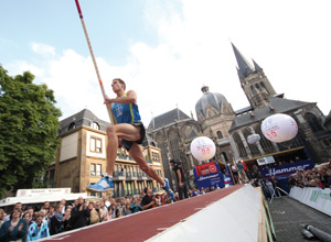 Das 8. NetAachen-Domspringen verspricht ein weiteres Leichtathletik-Highlight im Jahr 2012 zu werden. Gleich sechs Teilnehmer der Olympischen Spiele werden am 5. September beim traditionellen Stabhochsprung-Meeting an den Start gehen. Allen voran Überflieger und Silbermedaillen-Gewinner Björn Otto und Raphael Holzdeppe, der in London Olympia-Bronze geholt hat. Neben Otto und Holzdeppe wird aus deutscher Sicht mit Malte Mohr zudem der neunte der Olympischen Spiele antreten. Mit 5,90 Meter hält Mohr den Aachener Meeting-Rekord, aufgestellt im Jahr 2010. Er hat also allen Grund, den beiden Medaillengewinnern zu zeigen, wer in Aachen der Herr der Höhen ist. Björn Otto konnte das NetAachen-Domspringen allerdings auch schon zweimal in den Jahren 2007 und 2009 für sich entscheiden.