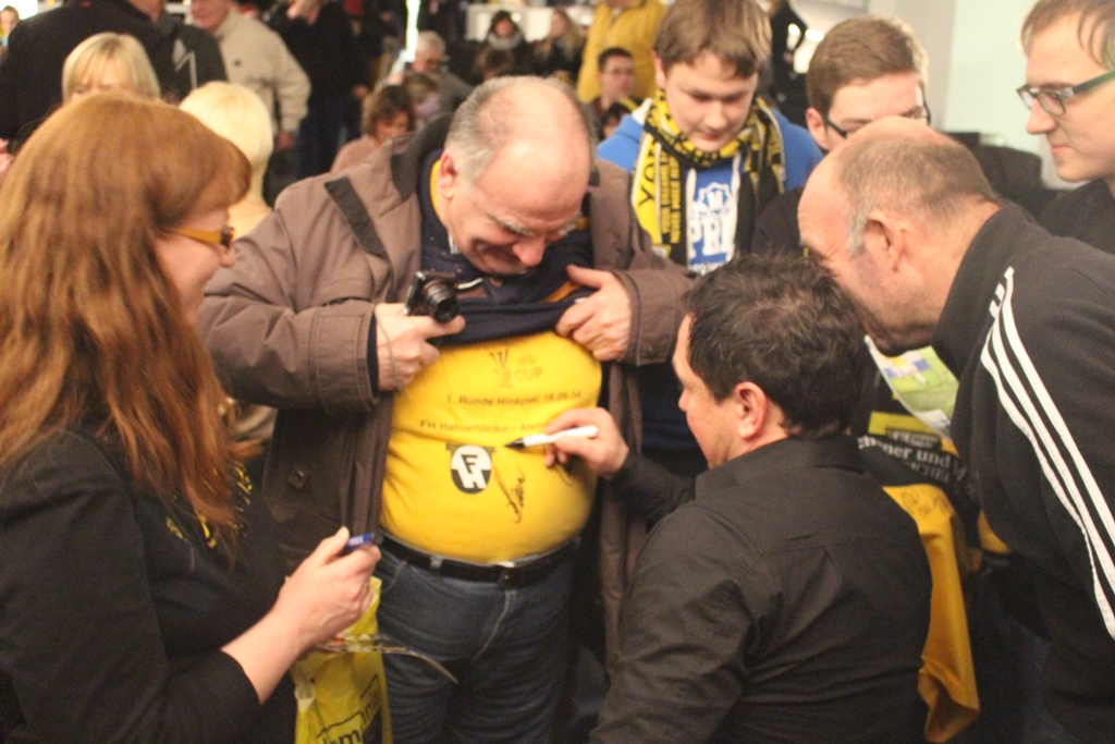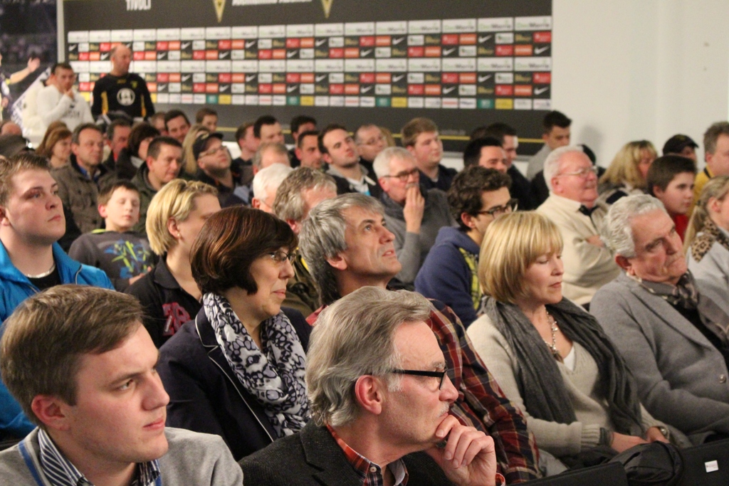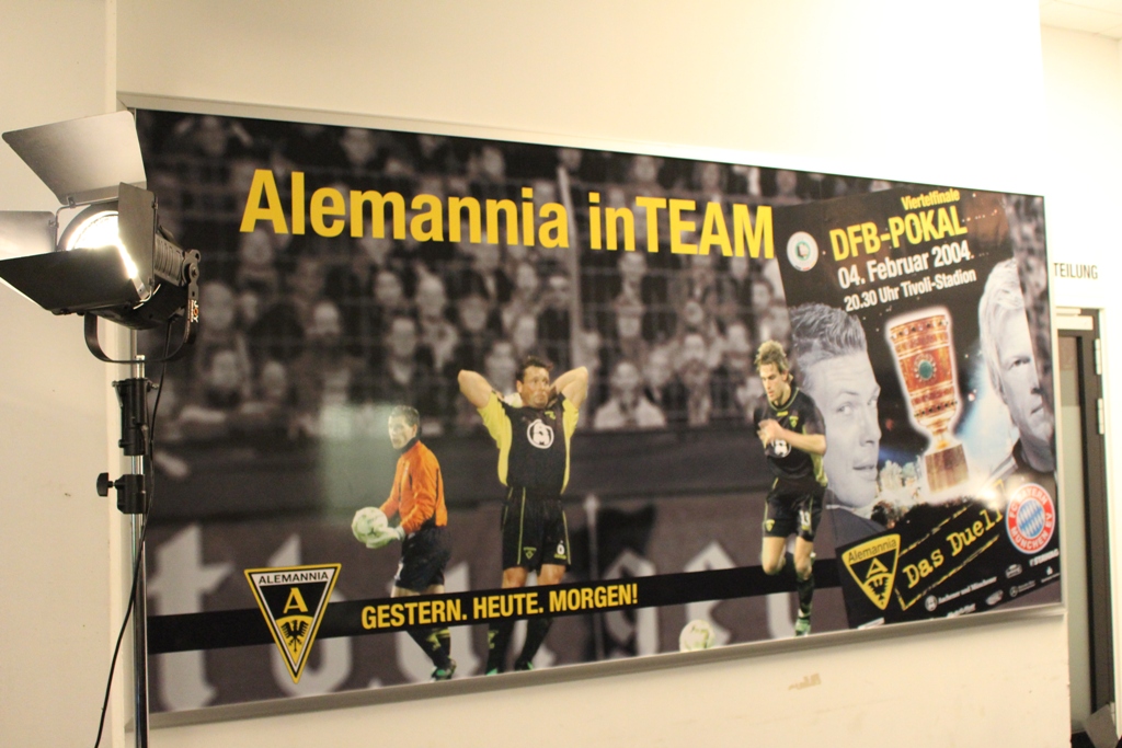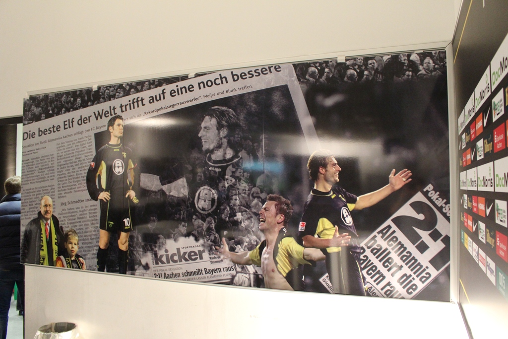 Am 4. Februar vor genau zehn Jahren traf die Alemannia im Viertelfinale des DFB-Pokals auf den amtierenden Deutschen Meister aus München und siegte nach Toren von Blank und Meijer mit 2:1. Es war der Auftakt zu einem grandiosen Jahr in der Vereinsgeschichte. Die Alemannia lud am vergangenen Dienstag zur Auftaktveranstaltung der Reihe „Alemannia inTEAM“ in den Spielertunnel des neuen Tivoli und rund 200 Fans und Freunde der Schwarz-Gelben kamen, um den Anekdoten der Pokal-Helden zu lauschen.