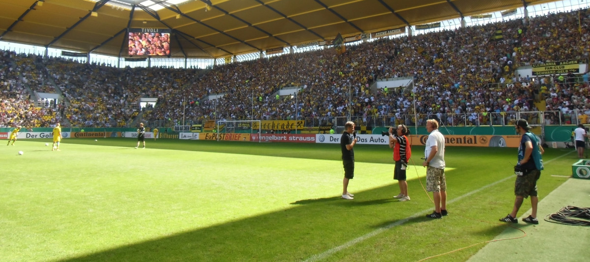 Für das DFB-Pokalspiel der Alemannia gegen Bayer 04 Leverkusen wurden bis Mittwoch, 10.7. knapp 10.500 Karten abgesetzt, davon 3.000 im Gästebereich.