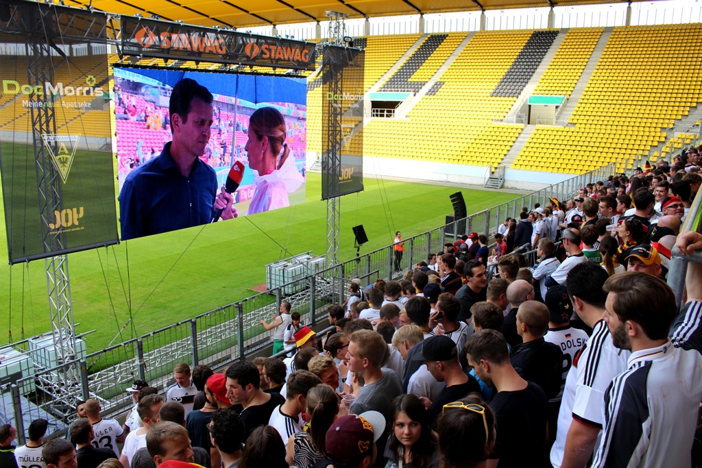 Die Stadiontore öffnen am Montag bereits um 17.45 Uhr. Der Eintritt ist wie gewohnt frei und Speisen sowie Getränke gibt es zum fanfreundlichen Einheitspreis von 2,50 €. Mit einer Gesamtkapazität von 7.500 Besuchern veranstaltet Alemannia Aachen das größte Public Viewing in der Region.