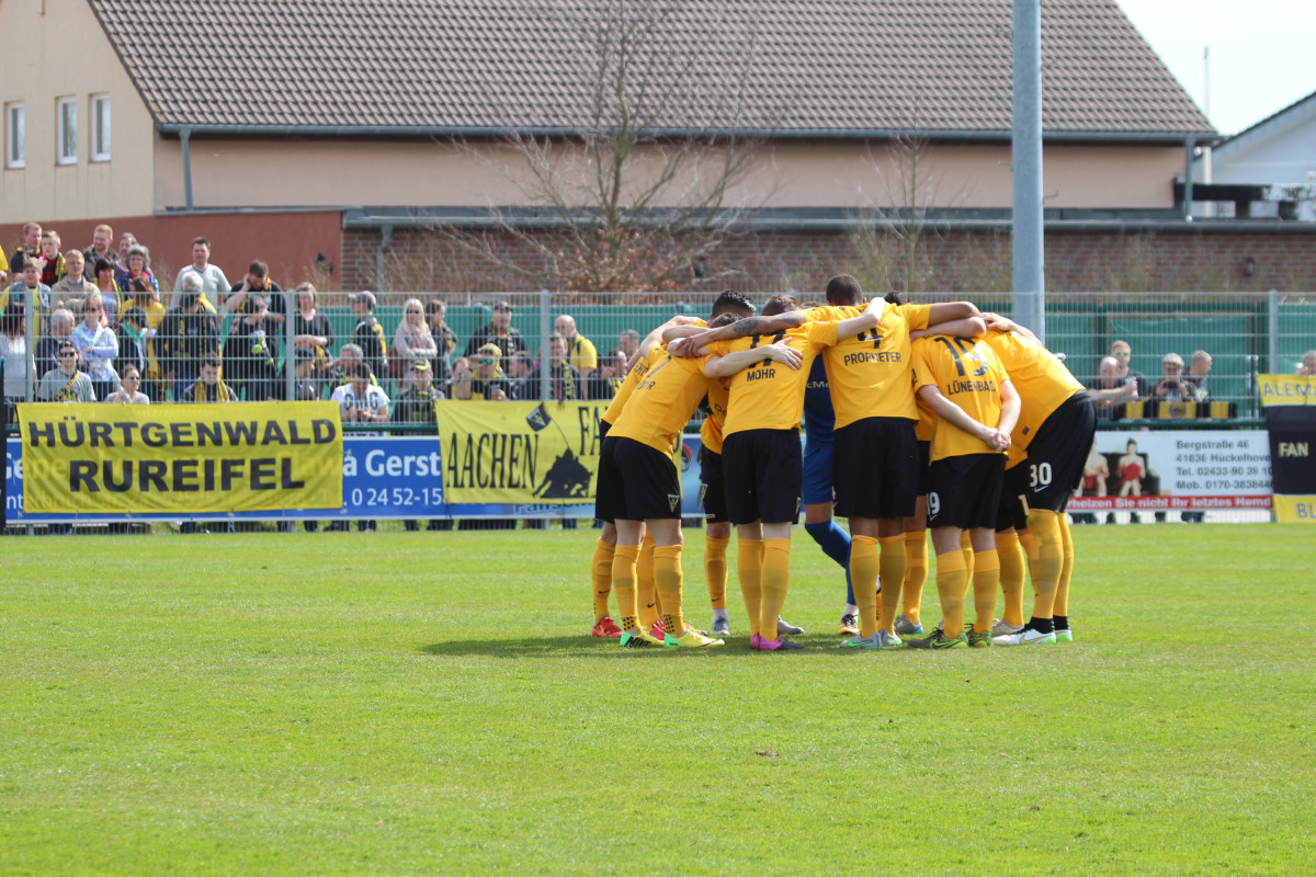 Die Alemannia musste sich am 32. Spieltag der Regionalliga West mit einem 2:2 beim FC Wegberg-Beeck begnügen. Dabei lagen die Schwarz-Gelben beim Liga-Schlusslicht bereits mit 0:2 im Hintertreffen und mussten die Partie ab der 58. Minute nach einer gelb-roten Karte gegen Dennis Dowidat in Unterzahl bestreiten. Daniel Engelbrecht scheiterte zudem mit einem Foulelfmeter.