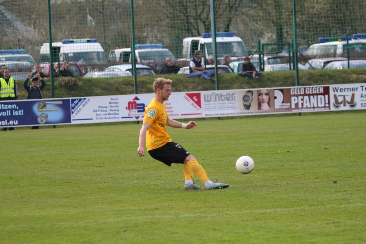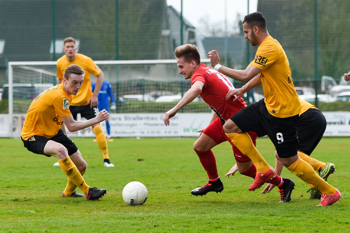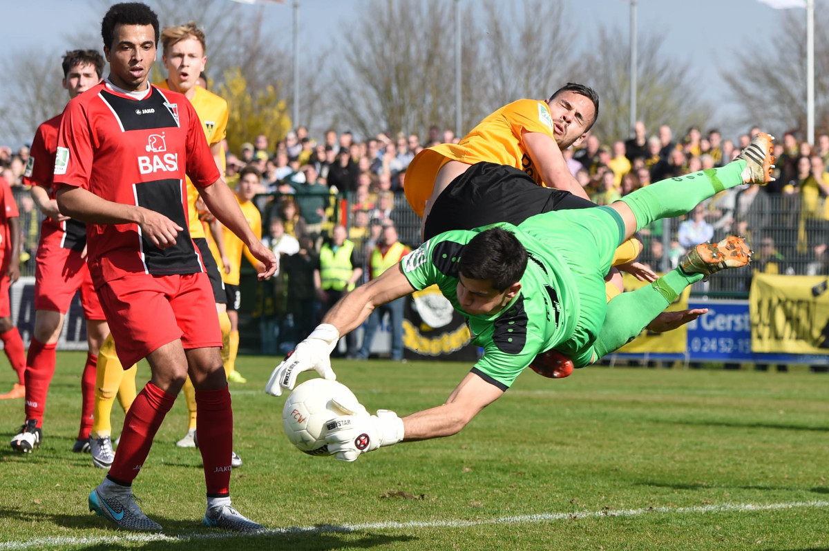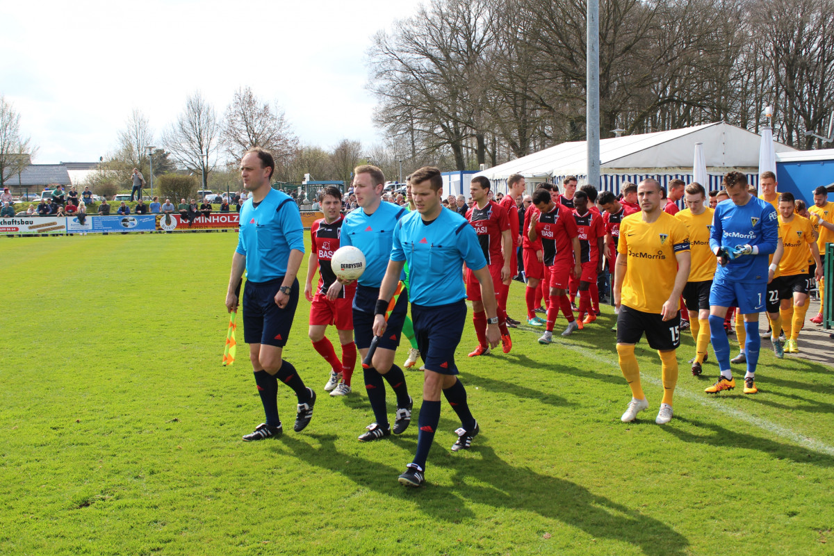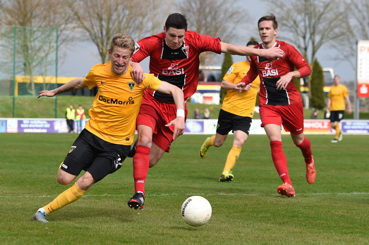 Tim Lünenbach ersetze vor 1.011 Zuschauern den verletzten Nils Winter auf der linken Abwehrseite. Außerdem begann Jerome Propheter anstelle von Meik Kühnel im Mittelfeld. Der Favorit begann engagiert und hatte nach sechs Minuten die erste Gelegenheit. Rüter flankte von rechts, Engelbrecht nahm die Kugel aus acht Metern direkt, zielte aber links am Tor vorbei. Im Anschluss an eine Dowidat-Ecke hämmerte Rossmann die Kugel aus dem Rückraum anschließend knapp drüber (9.). „Wir haben gut ins Spiel gefunden und sind in den ersten 15-20 Minuten einige Male auf dem Flügel durchgekommen“, war Fuat Kliic mit der Anfangsphase durchaus zufrieden. Leider gelang es seiner Elf in der Folgezeit nicht, den Druck aufrecht zu erhalten. In der 23. Minute rannten die Alemannen nach einem eigenen Freistoß wie bereits gegen Wattenscheid in einen Konter des Gegners. Richter spielte Lambertz frei, der Kleinheider umkurvte und zum 1:0 einschob. Mit diesem überraschenden Ergebnis wurden auch die Seiten getauscht.