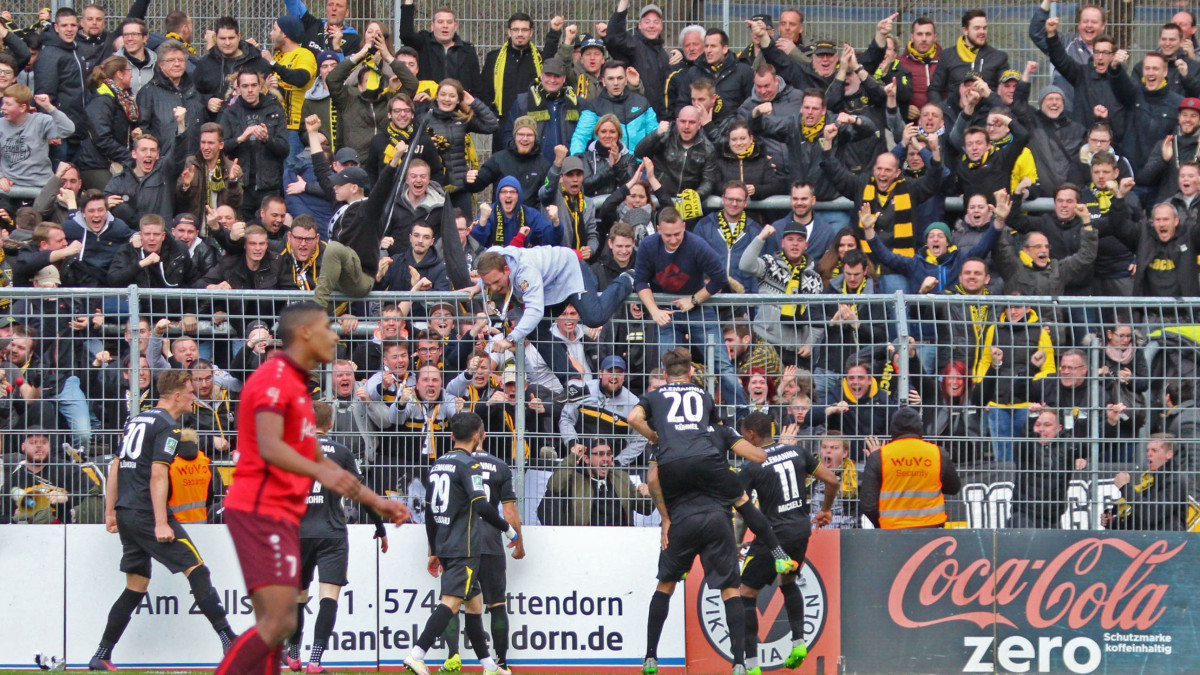 Ein weiteres Highlight im März war der Auswärtssieg beim Tabellenführer FC Viktoria Köln. „Am Mittwoch waren wir noch die Deppen der Nation und jetzt gelingt uns dieser Erfolg“, spielte Trainer Fuat Kilic auf das vorausgegangene Remis beim Schlusslicht TSG Sprockhövel an. In Köln drehten die Schwarz-Gelben einen Rückstand nach Toren von Hammel und Fejzuallahu und versetzten den Anhang in einen kollektiven Freudentaumel.