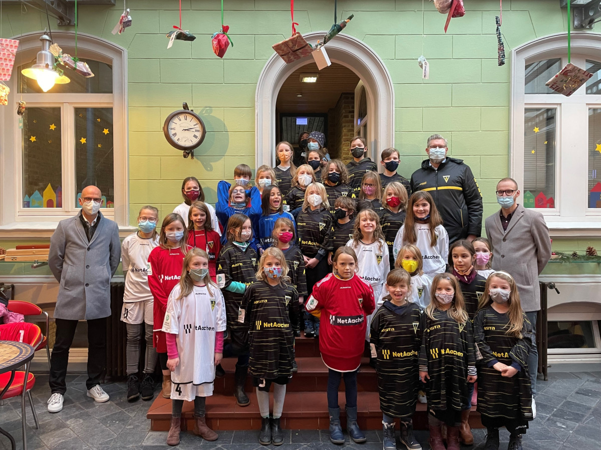 Alemannia und NetAachen beschenken rund 60 Kinder mit Jugend-Trikots