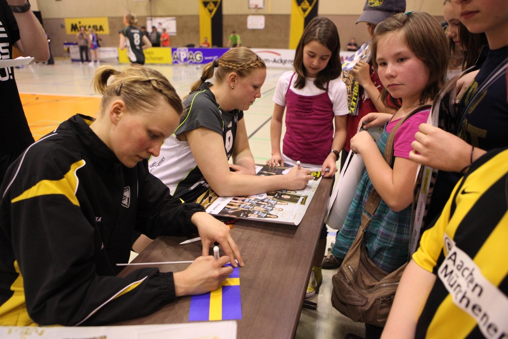 Mit diesem wie gewohnt von Hallensprecher André Schnitker moderierten "Fast-Länderspiel" kommen am Mittwoch, 26. Mai, die Aachener Fans noch einmal in den Genuss, Rönnbäck und Wikander und alle anderen Aachenerinnen zu sehen. Die Halle Neuköllner Strasse ist ab 19 Uhr für das Publikum geöffnet, der Eintritt ist frei. Spielbeginn ist um 20 Uhr.