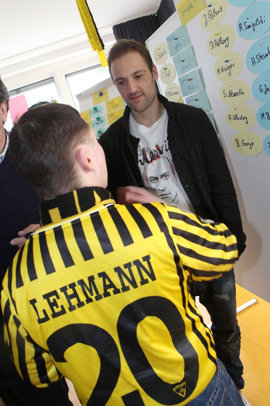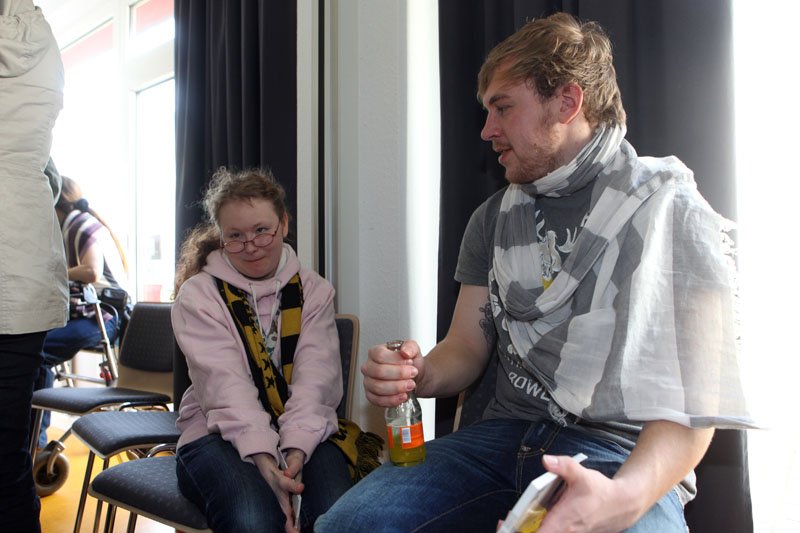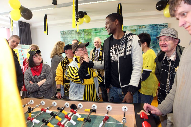 Bei den Fußballern gelang der Versuch in jedem Fall. Spürbar sank mit jeder Minute die Zurückhaltung, den Spielern war die Freude förmlich anzumerken. „Es ist einfach wunderbar, den Leuten mit unserer bloßen Anwesenheit ein Lächeln aufs Gesicht zu zaubern. Wir versuchen, mit den Menschen ein bisschen Spaß zu haben und ihnen etwas zurückzugeben. Es ist schön, hier zu sein“, sagt Nico Herzig. „Die Leute sind richtig aufgeregt und freuen sich einfach riesig. Ich finde es super hier“, fügt Allan Jepsen hinzu. Für den Coach war es ein absolut gelungener Ausgleich zum Alltag: „Man sieht, wie einfach wir diesen Menschen eine Freude machen können, nämlich durch unsere bloße Anwesenheit. Auf der anderen Seite finde ich es absolut bemerkenswert, welche Lebensfreude die Behinderten ausstrahlen. Davon können wir uns viel abschauen“, so Krüger.