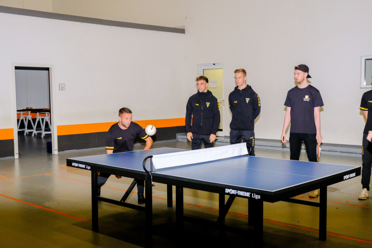 Im ersten Minispiel „Sortieren“ ging es noch ruhig zur Sache, als die Teams die aktuelle Tabelle der Regionalliga West sortieren mussten. Dabei sorgte vor allem die Platzierung des 1. FC Bocholt und des 1. FC Düren für Fehler. Fußballerisches Wissen war auch bei einem Rätsel gefragt, bei dem Bilder verschiedenster Fußballerinnen und Fußballer erkannt werden mussten. Es wurde aber auch sportlicher: Beim „Langsamfahren“ musste eine kurze Strecke auf einem BMX ohne Sattel so langsam wie möglich gefahren werden. David Sauerland und Marcel Damaschek bewiesen bei diesem Minispiel besondere Qualitäten und fuhren für ihre Teams die längsten Zeiten ein. Lukas Wilton und Marco Müller konnten dafür beim Spiel „Bierdeckel“ mit 18 Stück die meisten Gummi-Bierdeckel hintereinander auf einen Tisch werfen. Beim Headis-Duell an der Tischtennisplatte hatte das Trainerteam um Helge Hohl und Co das Nachsehen gegen das Team um Franko Uzelac.