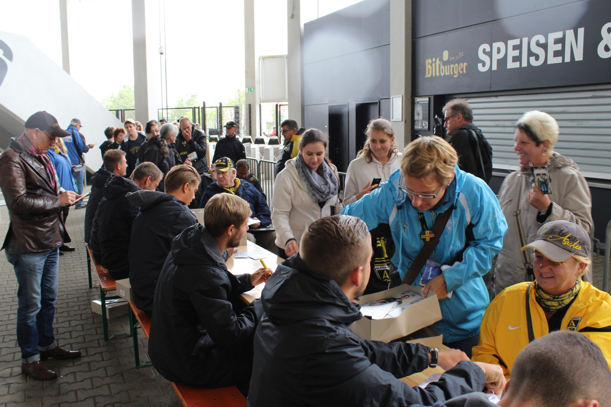 Ein Höhepunkt war wie in den vergangenen Jahren die Autogrammstunde. Schon weit vor deren Beginn bildete sich vor dem Eingang eine lange Schlange, die zeitweise bis zur CHIO-Brücke reichte. Mannschaftskapitän Aimen Demai & Co. gingen beim Signieren sogar in die Verlängerung. Mehr als 90 Minuten schrieben die Kicker was das Zeug hielt.