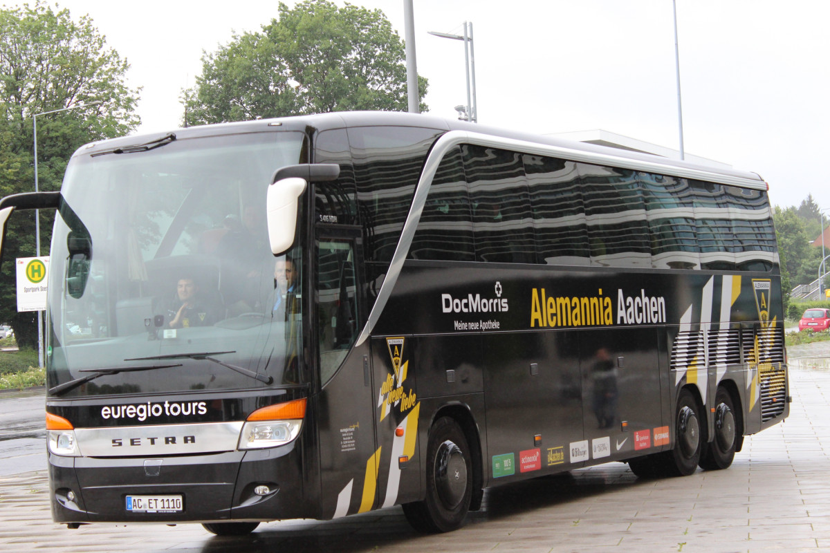 Doch bevor Trainer Christian Benbennek und sein Team unzählige Autogramm- und Fotowünsche erfüllten, wurde der neue Mannschaftsbus offiziell präsentiert. Die Mannschaft nahm zum ersten Mal in ihrem neuen Reisegefährt Platz und fuhr auf dem Stadionvorplatz vor. Der Bus im Look der „Alte Neue Liebe“-Kampagne war über den ganzen Tag ein großer Anziehungspunkt.