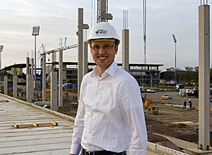 Nach vier Jahren wird Stephan van der Kooi seine Tätigkeit bei der Alemannia zum 31. Dezember 2010 auf eigenen Wunsch beenden. Der 34-Jährige hatte als Projektleiter für den Stadionbau einen riesigen Anteil am Entstehen des neuen Tivoli. Jetzt hat sich der Bauingenieur für den Weg in die Selbstständigkeit entschieden und steigt wie geplant in das väterliche Unternehmen ein. „Nach der Fertigstellung des Stadions und der Begleitung des ersten Betriebsjahres geht es mir um meine berufliche Perspektive. Deshalb habe ich mich für den Wechsel entschieden.“ Er sei stolz darauf, am Bau des neuen Tivoli maßgeblich mitgewirkt zu haben, sagt der Prokurist der Alemannia Aachen Stadion GmbH. „Es ist uns gelungen, im Budget zu bleiben und den Zeitplan einzuhalten. Das ist im Baugewerbe alles andere als selbstverständlich“, freut er sich. Da auch der Übergang in die Betriebsphase sehr reibungslos verlaufen sei, könne der Verein künftig ohne ihn auskommen: „Ich habe mich quasi selbst wegrationalisiert“, sagt er lachend.
