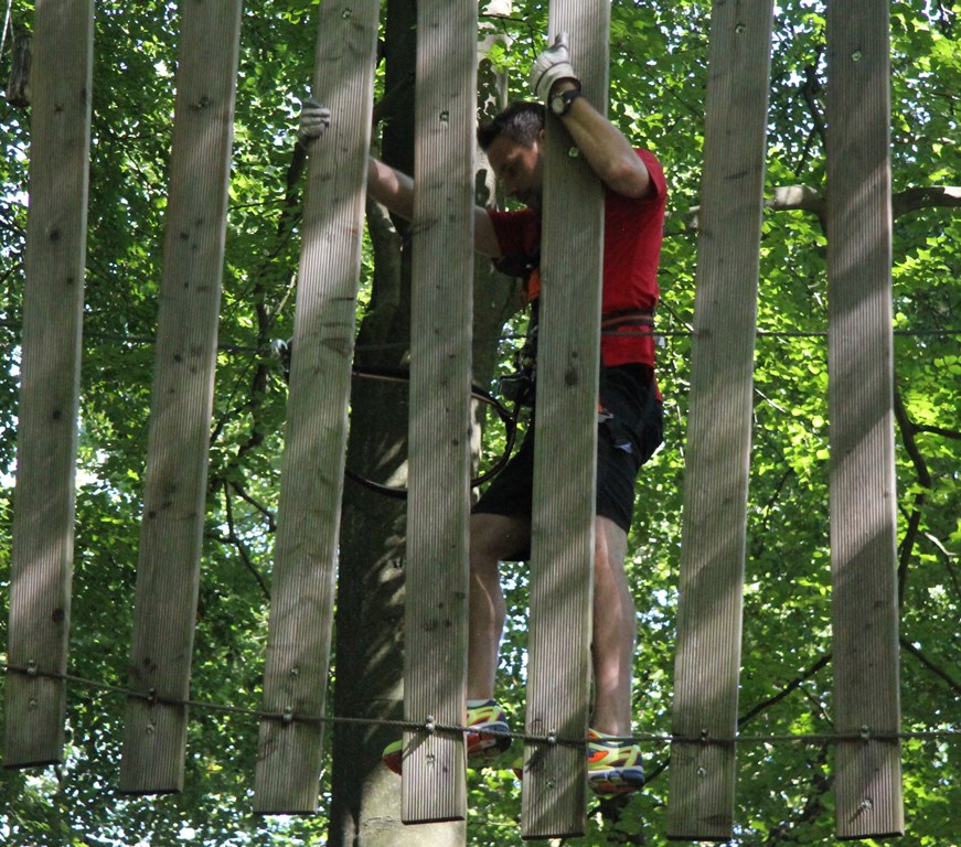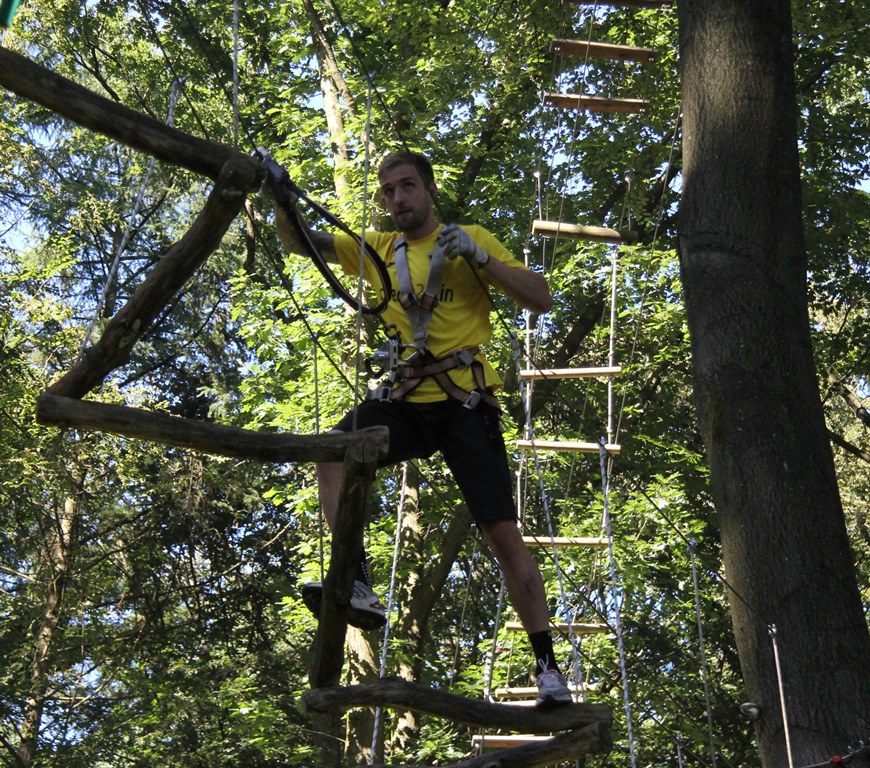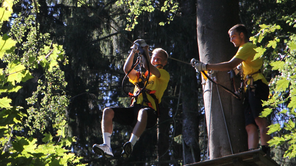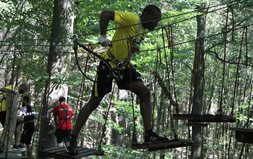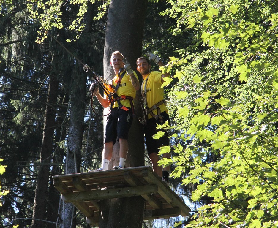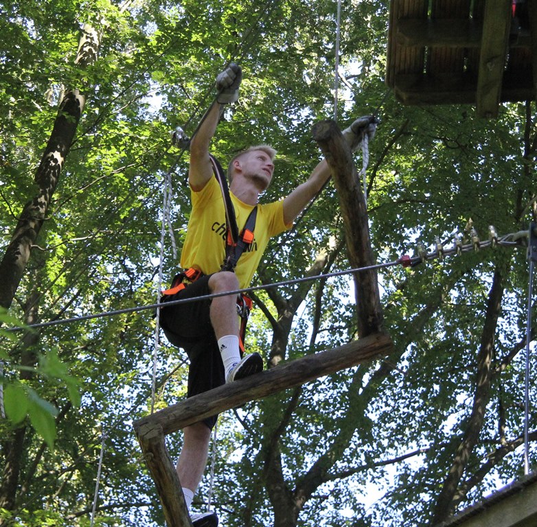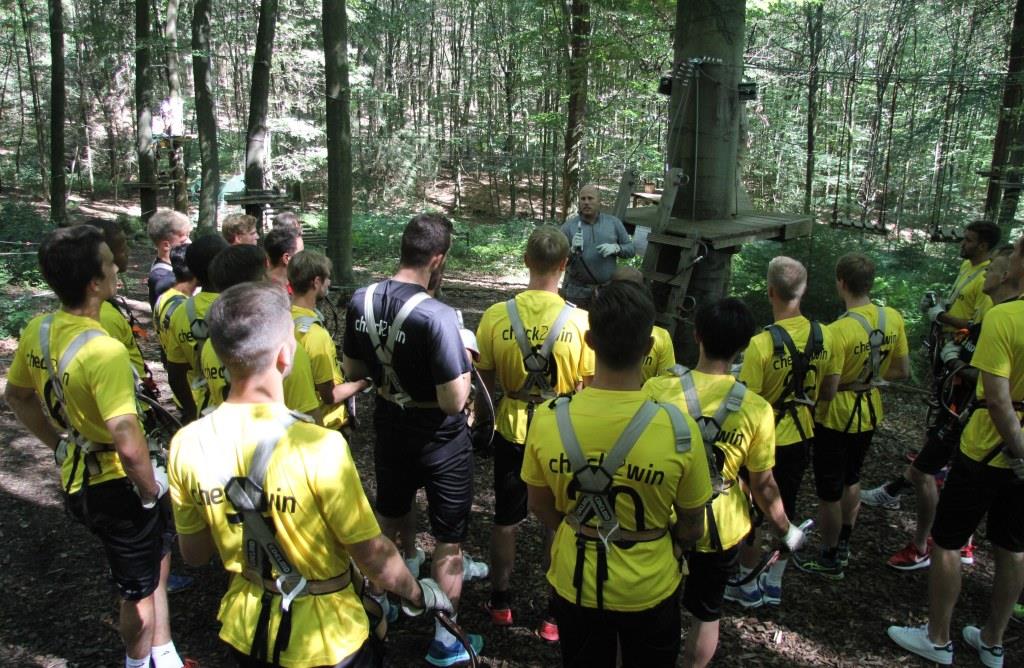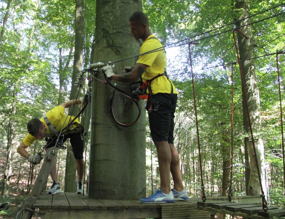 Schwindelfrei mussten die Alemannia-Kicker am Dienstag sein, schließlich bat Cheftrainer Fuat Kilic im Nachmittag zum Teambuilding in den Aachener Kletterwald. Während die Spieler morgens noch den grünen Rasen unter ihren Füßen hatten, ging es im Kletterwald auf bis zu 22 Meter in die Höhe.
