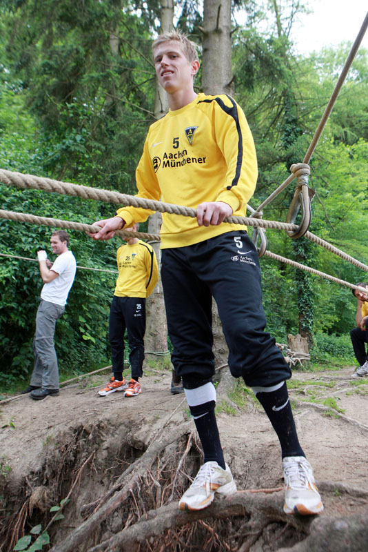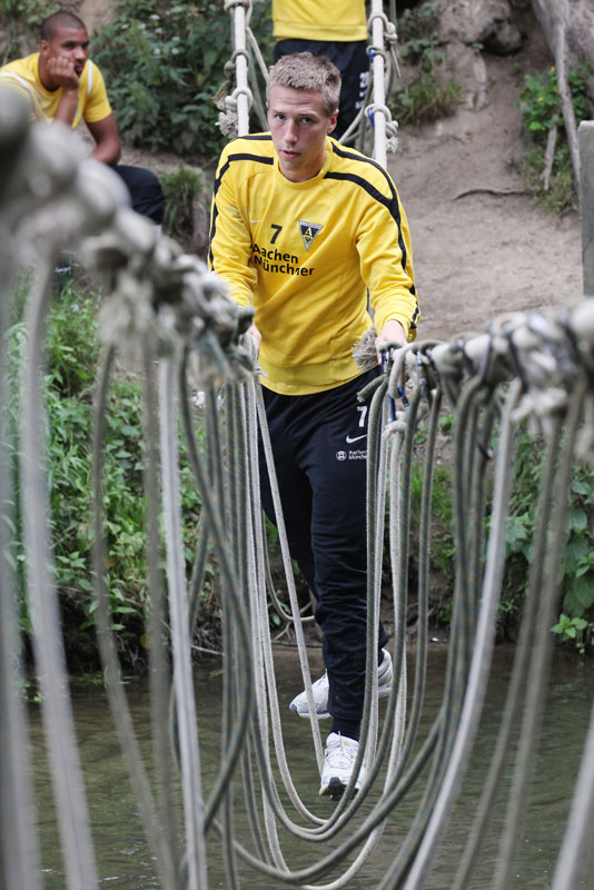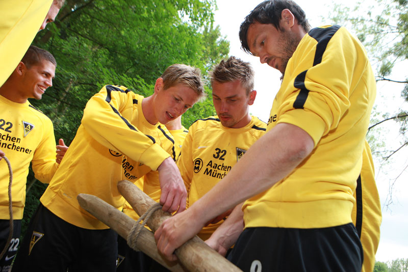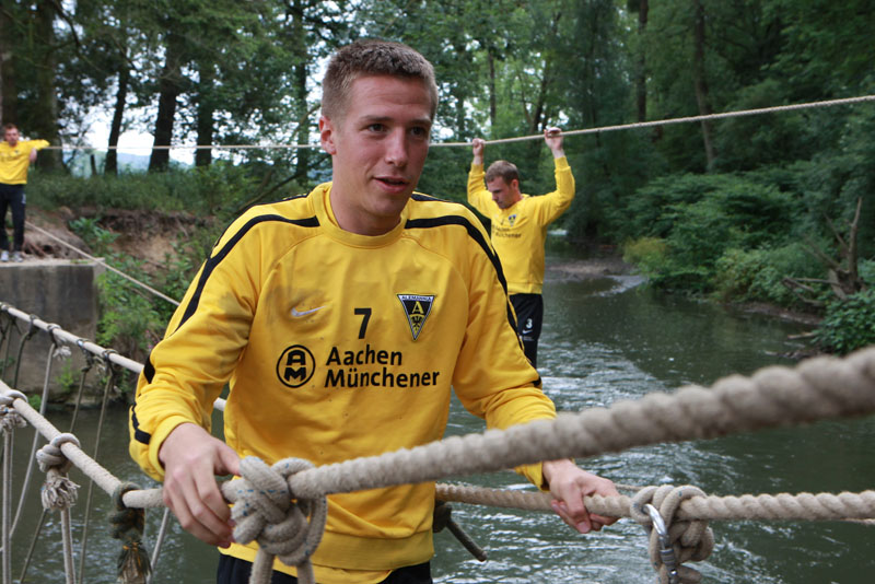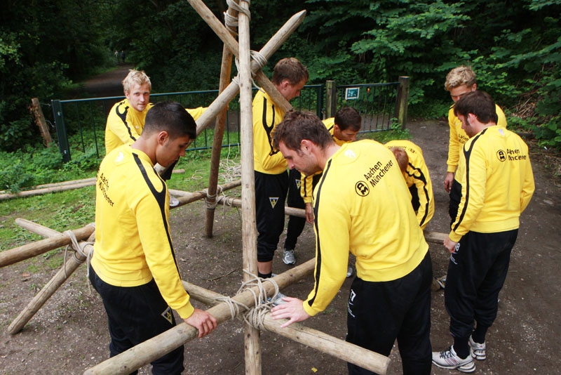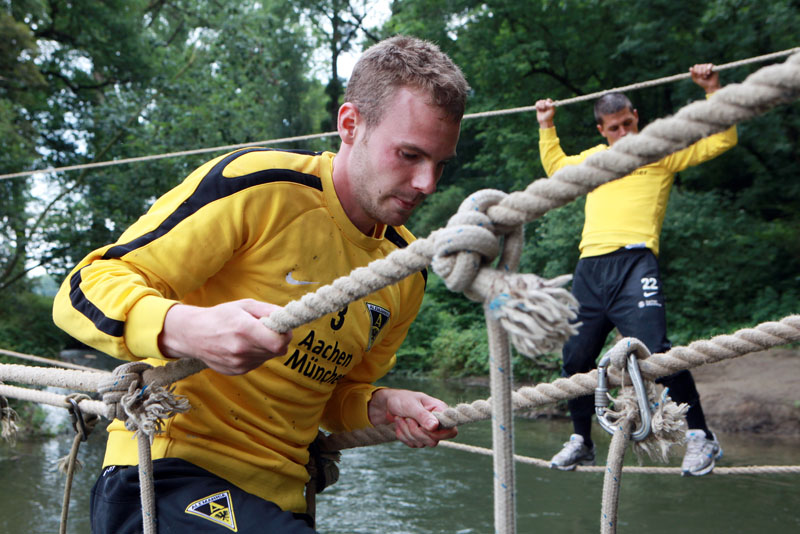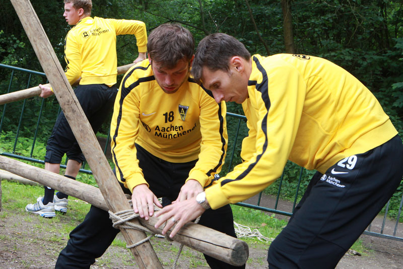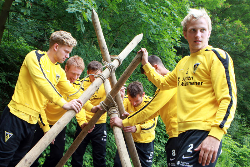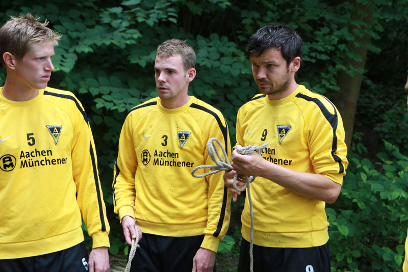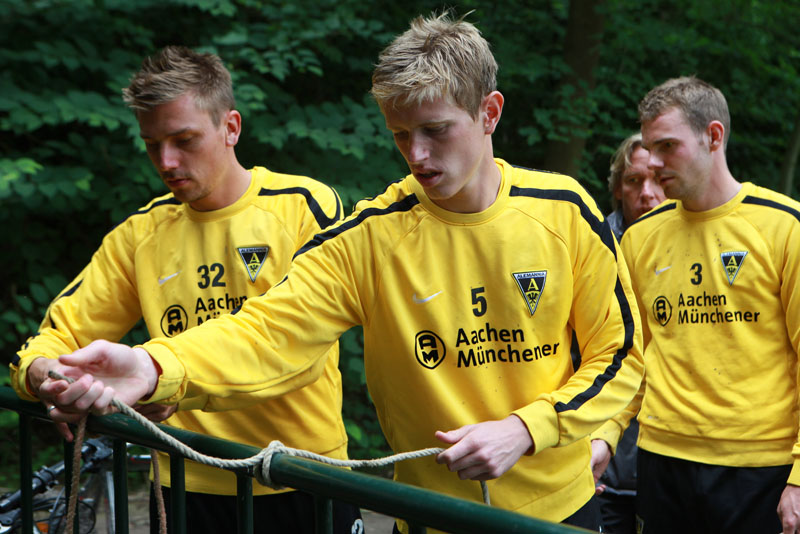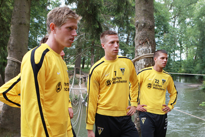 Am Mittwoch ging es für die Alemannia-Profis in aller Frühe los in Richtung Niederlande. Genauer gesagt lautete das Ziel Berg en Terblijt in der Nähe von Valkenburg. Dort erwartete die Kicker ein interessanter Tag ganz ohne Fußball.