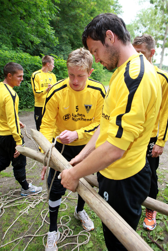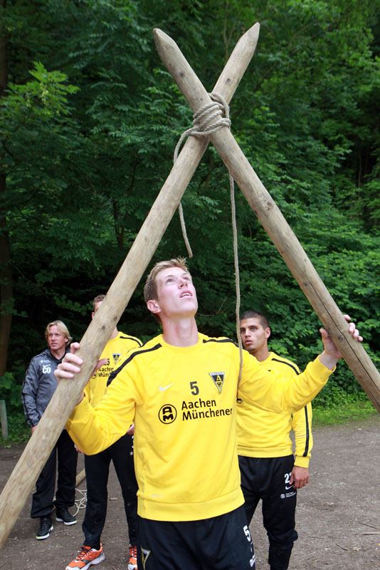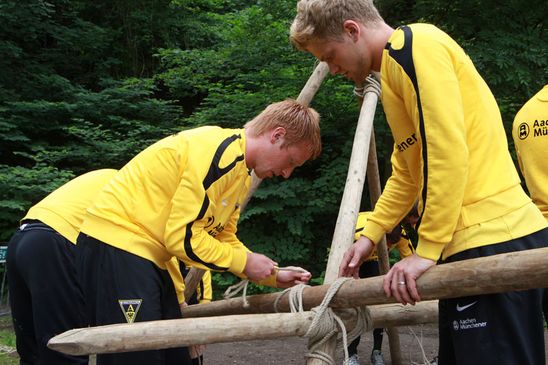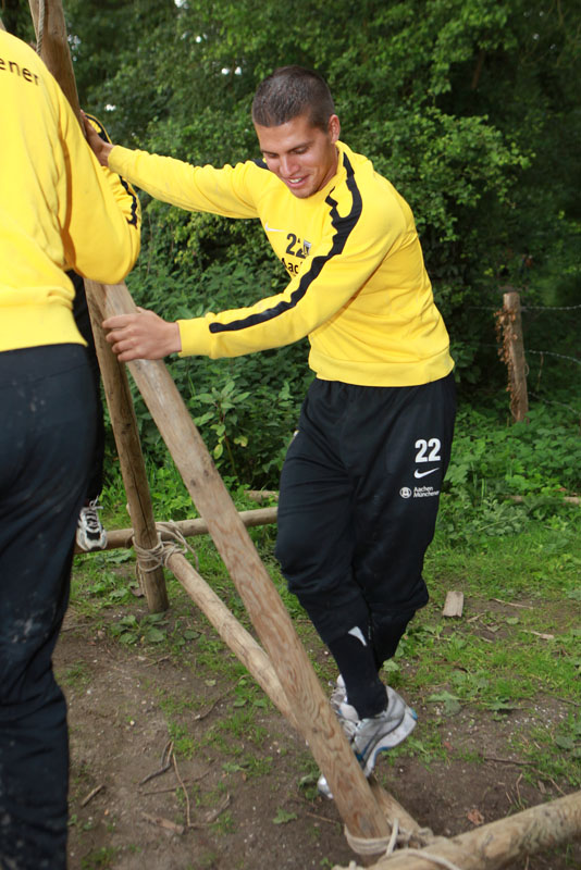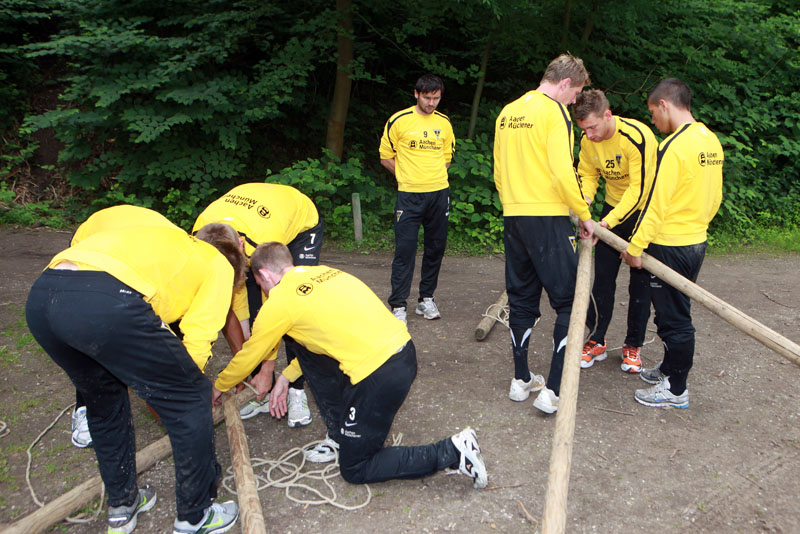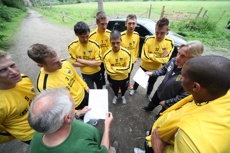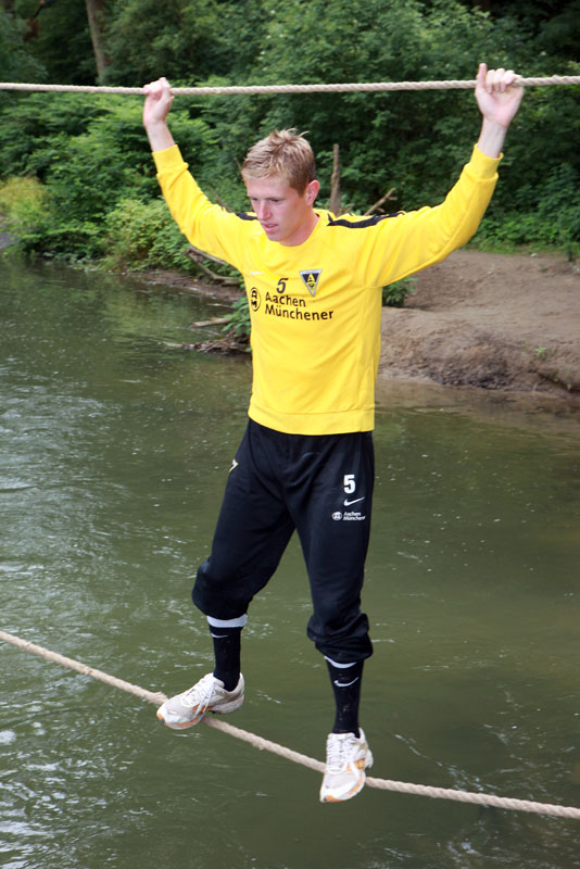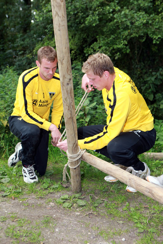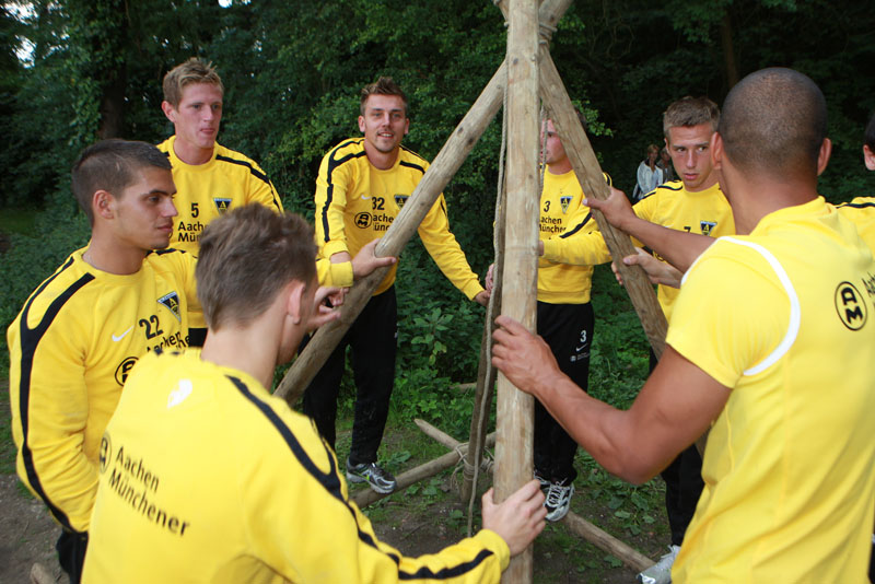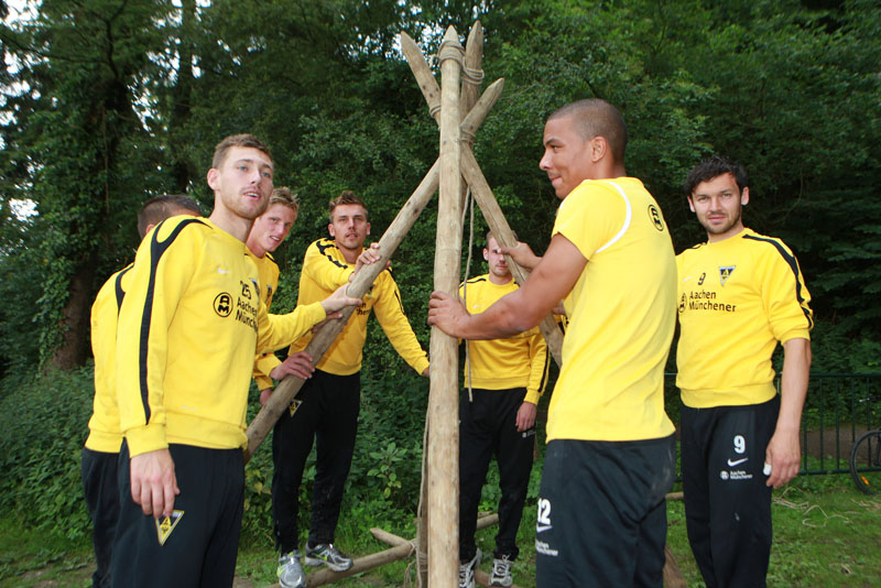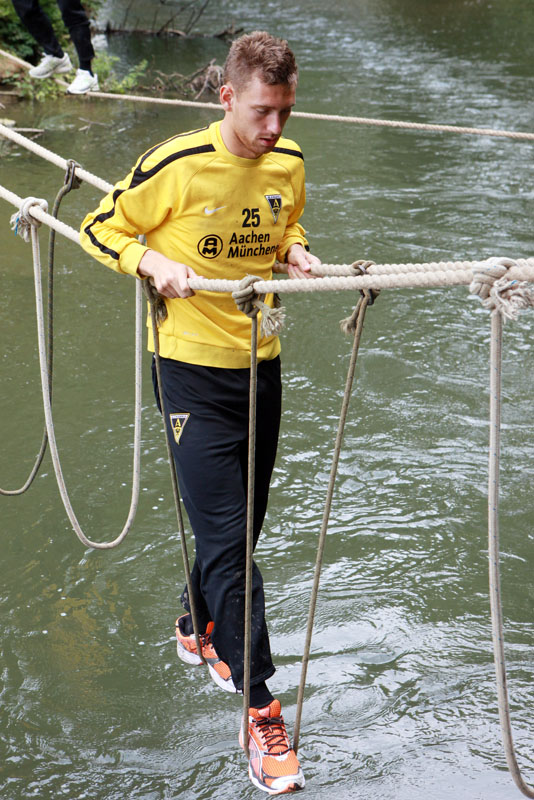 Am Mittwoch ging es für die Alemannia-Profis in aller Frühe los in Richtung Niederlande. Genauer gesagt lautete das Ziel Berg en Terblijt in der Nähe von Valkenburg. Dort erwartete die Kicker ein interessanter Tag ganz ohne Fußball.