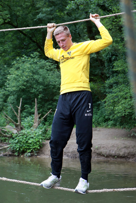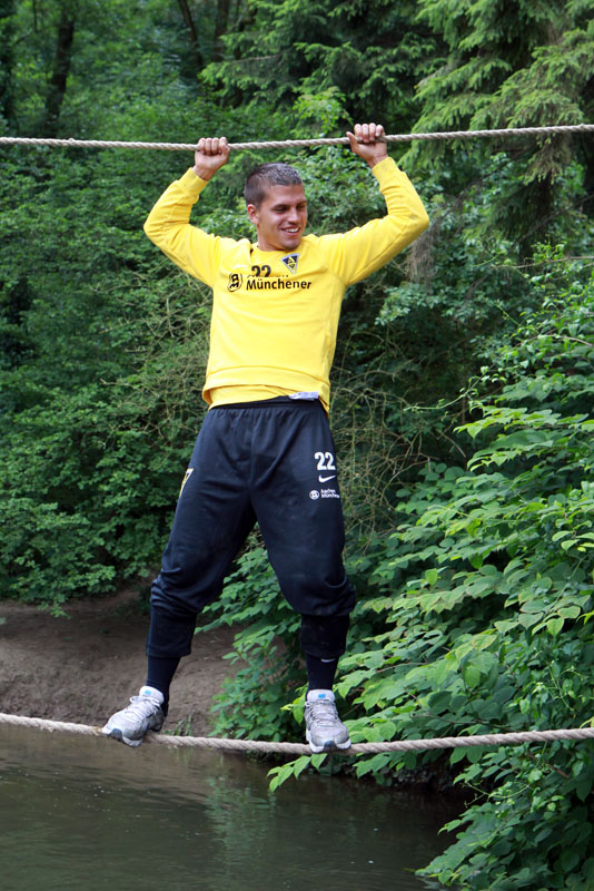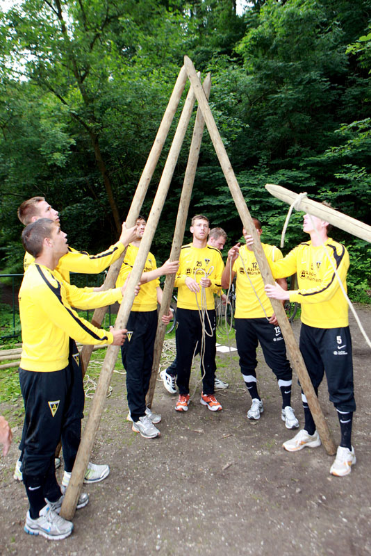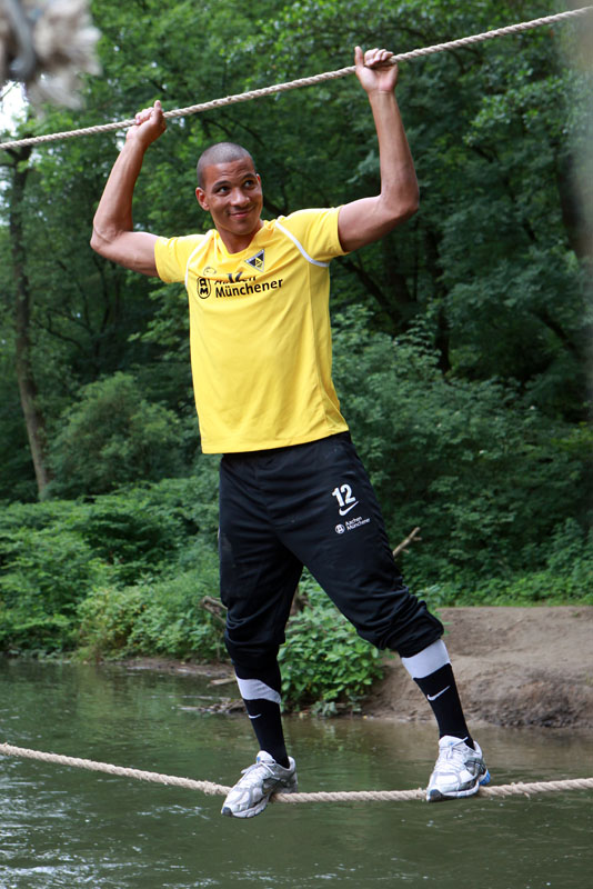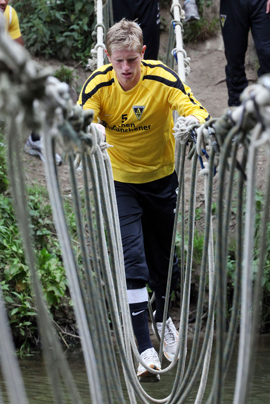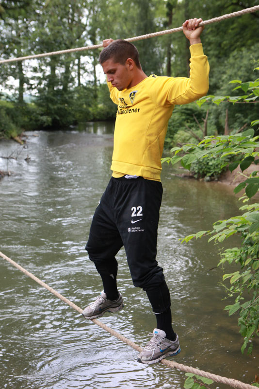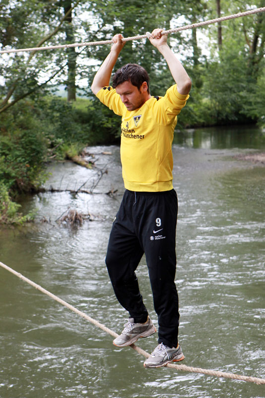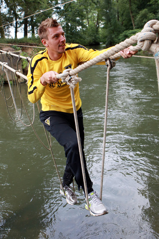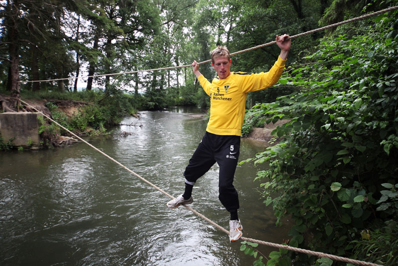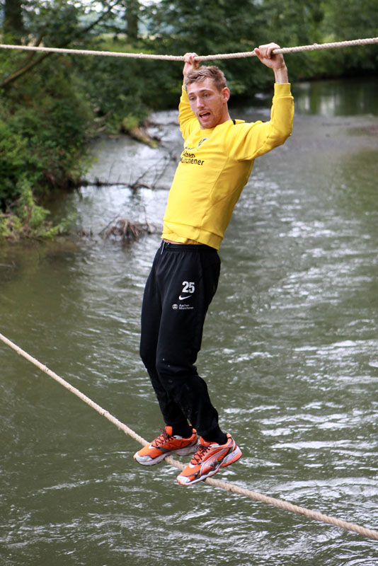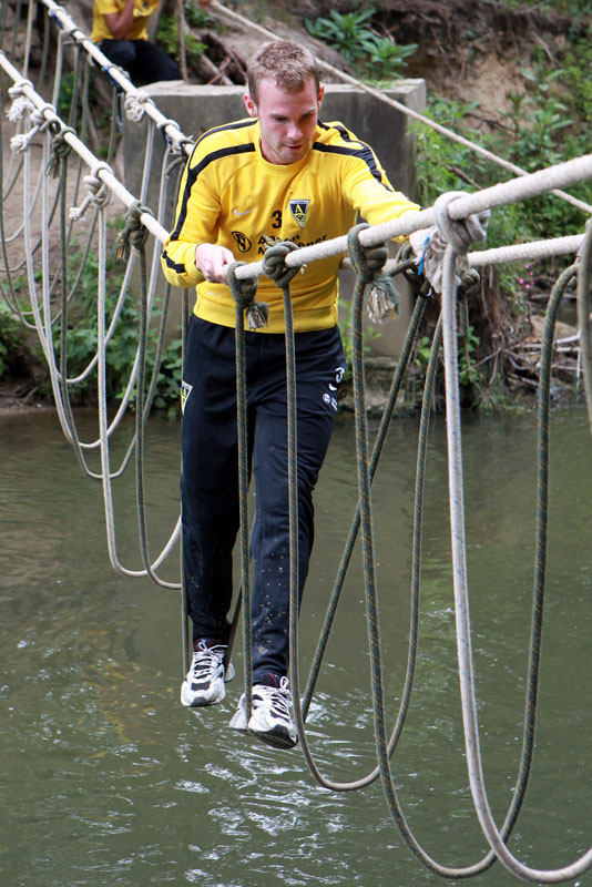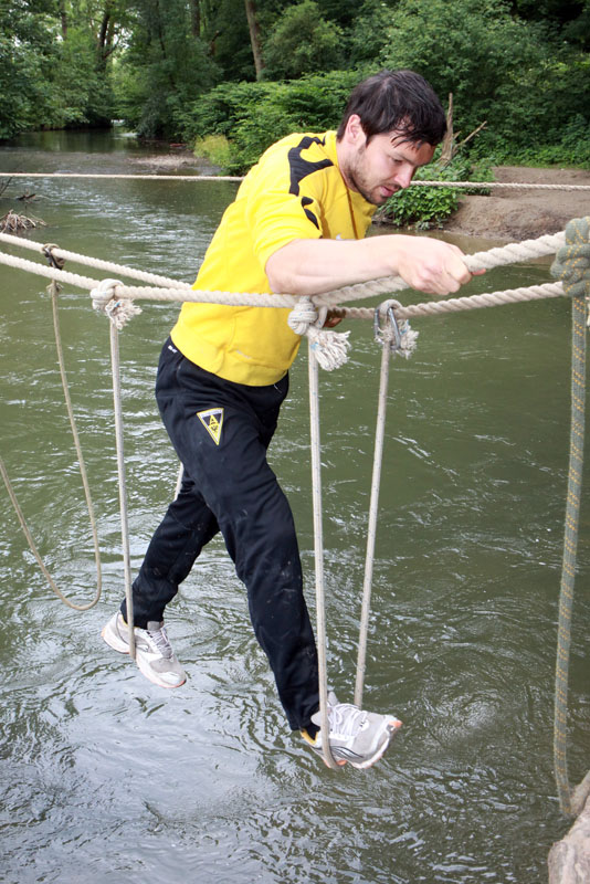 Es sollte der anstrengendste Programmpunkt werden. Beim Durchqueren einer Grotte bei völliger Dunkelheit ging es mehr um gemeinsames Agieren, was auch beim Überqueren eines Flusses mit Hilfe diverser Seilkonstruktionen galt. Letzte Aufgabe des Tages war das Abseilen, wieder ging es darum, gemeinsam zum Erfolg zu kommen.