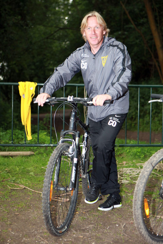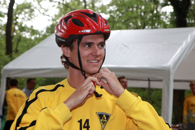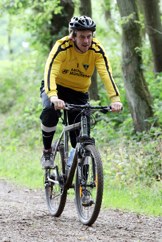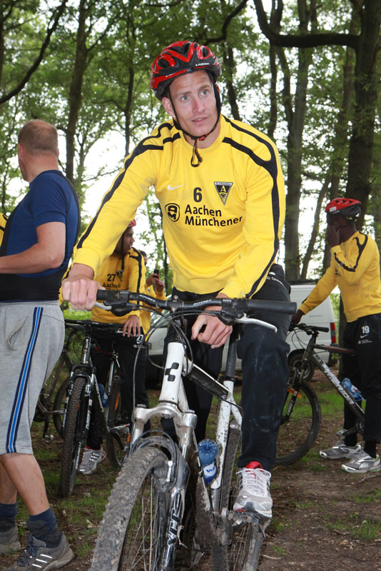 Als es zur Mittagszeit mitten im Wald eine Pause mit Broodjes und einer Kopje Koffie gab, war einigen Schwarz-Gelben die Anstrengung schon anzusehen. Sie hatten nämlich den Vormittag auf Mountainbikes verbracht. Nun sind die Niederlande nicht gerade als Hochgebirge bekannt, aber rund um Valkenburg gibt es ausnahmsweise so manche steile Erhebung. Gemeinerweise hielten die ortskundigen Guides auch noch ein Zeitfahren ab.