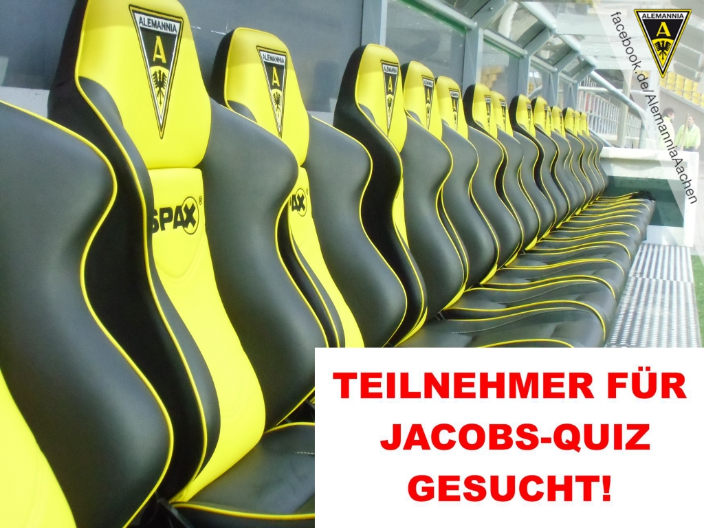 Für unser Stadion-Gewinnspiel „Jacobs-Quiz“ vor allen Ligaheimspielen, suchen wir neue Kandidaten.Du nimmst kurz vor Anpfiff auf der Trainerbank Platz und versuchst aktuelle und ehemalige Alemannen auf den Videowänden zu erkennen - beide Spieltagsteilnehmer erhalten interessante Alemannia-Preise.
