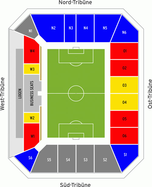 Karten für die Blöcke W2, W3, O3 und O4 kosten 20 Euro (15 Euro ermäßigt), für W1, W4, O1, O2, O5 und O6 15 Euro (10 Euro ermäßigt) und für N2 bis N6 12 Euro (9 Euro ermäßigt).