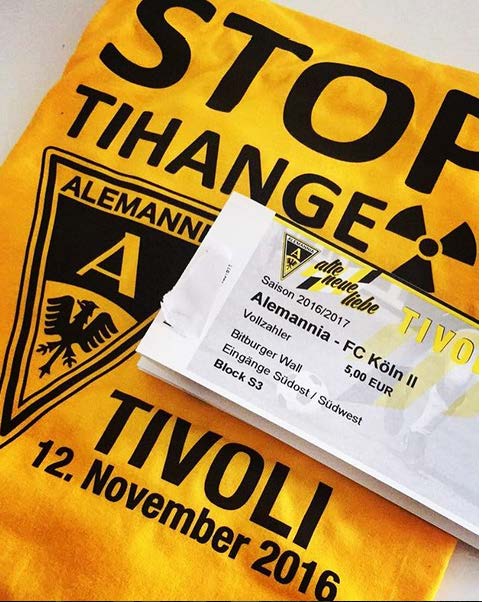 Die Nachfrage ist enorm: Über 20.000 Besucher werden am Samstag zum „Stop Tihange“-Spiel auf dem Tivoli erwartet. In den Tagen bis zum Spiel bieten die Schwarz-Gelben Eintrittskarten auch in der Aachener Innenstadt an.