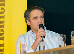 Über das Thema Konstanz sprachen die Moderatoren mit Coach Jürgen Seeberger. „Sicher wünsche ich mir immer so Halbzeiten wie die erste gegen Mainz 05. Aber das klappt nun mal nicht immer“, so der Trainer. Im Mittelfeld sei die optimale Mischung noch nicht ganz gefunden, das Tabellenbild mit 17 Punkten sei noch nicht zufriedenstellend. „Ich weiß um die inhaltlichen Aspekte, die anstehen.“ Das Ahlen-Spiel sei für die Mannschaft ein Fingerzeig gewesen, als sie nach dem 0:1 den Faden verloren habe. „Das wird nicht mehr passieren, denke ich.“ Für die beiden Spieler fand der Trainer lobende Worte: „Von Acki habe ich nichts anderes erwartet. Er verfügt über alle Möglichkeiten. Mit Lewis war ich am Anfang vielleicht sogar zu vorsichtig. Toll, wie der Junge das alles wegsteckt. Dass er Fußball spielen kann, sieht jeder.“
