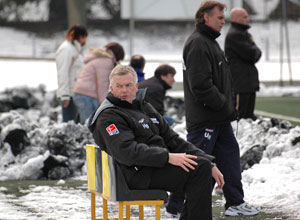 Rund 100 Zuschauer sahen auf dem Kunstrasenplatz vor der Jugendcafeteria eine ausgeglichene Anfangsphase, in der kein Zweiklassen-Unterschied erkennbar war. Es dauerte bis zur 28. Minute, als der erste gute Angriff der Gäste auch gleich mit einem Torerfolg belohnt wurde. Dosek hatte aus dem rechten Halbfeld präzise auf Cafu geflankt, der Marcus Hesse mit einem platzierten Kopfball keine Abwehrchance ließ. Die Sportfreunde kamen nun besser ins Spiel, versäumten es allerdings, den Vorsprung auszubauen.