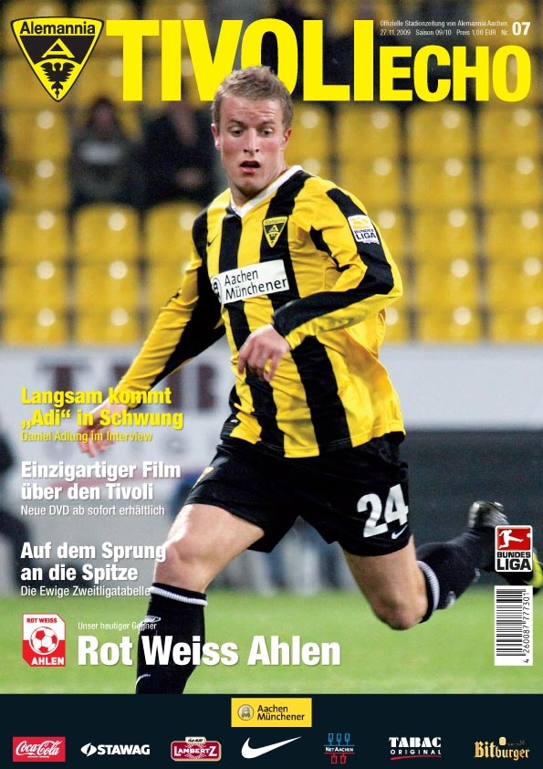 Das Tivoli Echo ist ab sofort in den Alemannia-Shops im Tivoli und in der Pontstraße, im Handel und natürlich beim Heimspiel gegen Rot Weiss Ahlen an den diversen Verkaufsständen im Stadion für nur 1 Euro erhältlich.