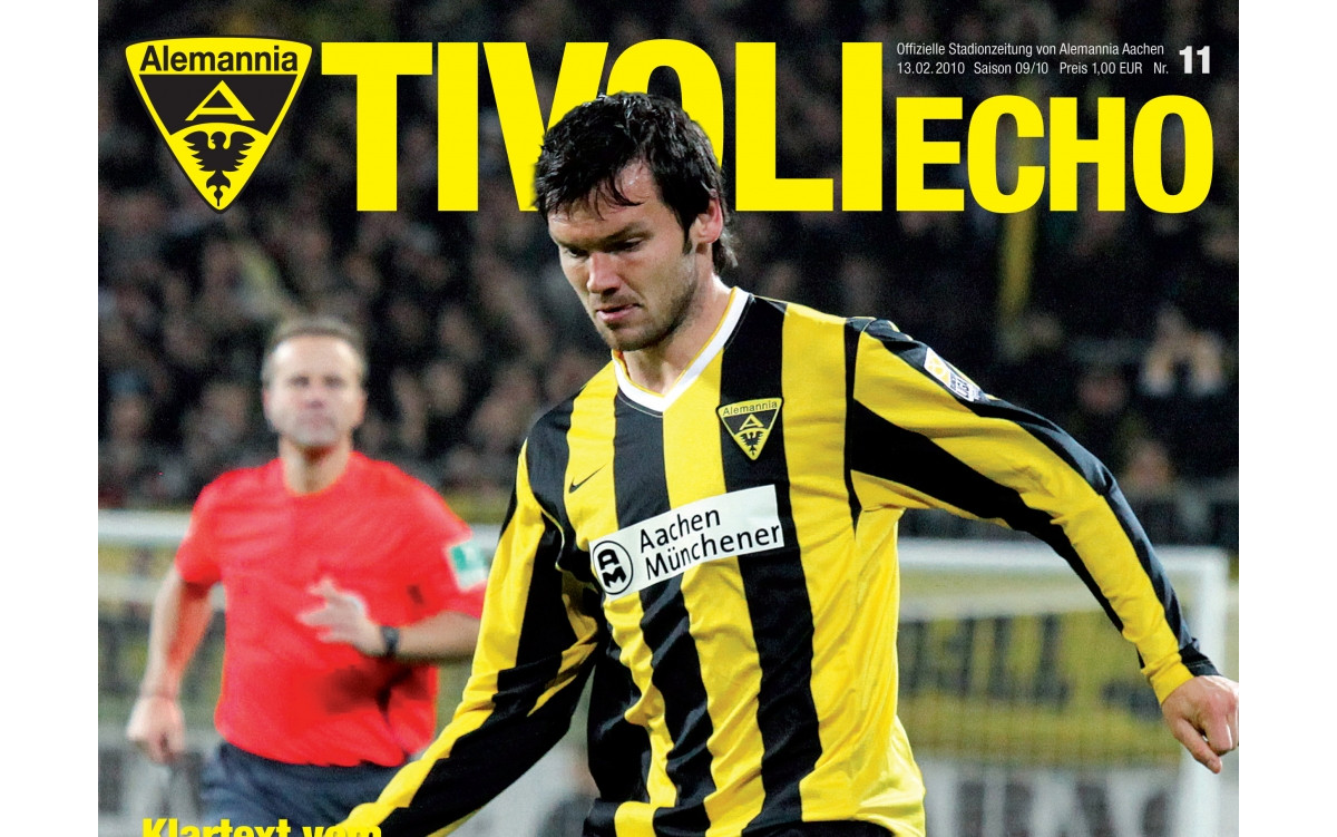 Das neue Tivoli Echo ist da. In der elften Ausgabe des Stadionmagazins gibt es alles rund um die Partie gegen Rot-Weiß Oberhausen. Kaderliste, Statistik-Spezial-Seite und das Gegnerportrait informieren rund um die Begegnung. Darüber hinaus steht der neue Kapitän Benny Auer im Interview Rede und Antwort. Der Toptorjäger resümiert die zurückliegenden Spiele, berichtet von seiner Benennung zum Spielführer und spricht von seinen Perspektiven in Aachen. Außerdem kommt auch Alemannias Nachwuchs nicht zu kurz. Es gibt einen ausführlichen Bericht über die Zweite Mannschaft sowie Beiträge zu U19 und U17, die in die Rückrunde starten.