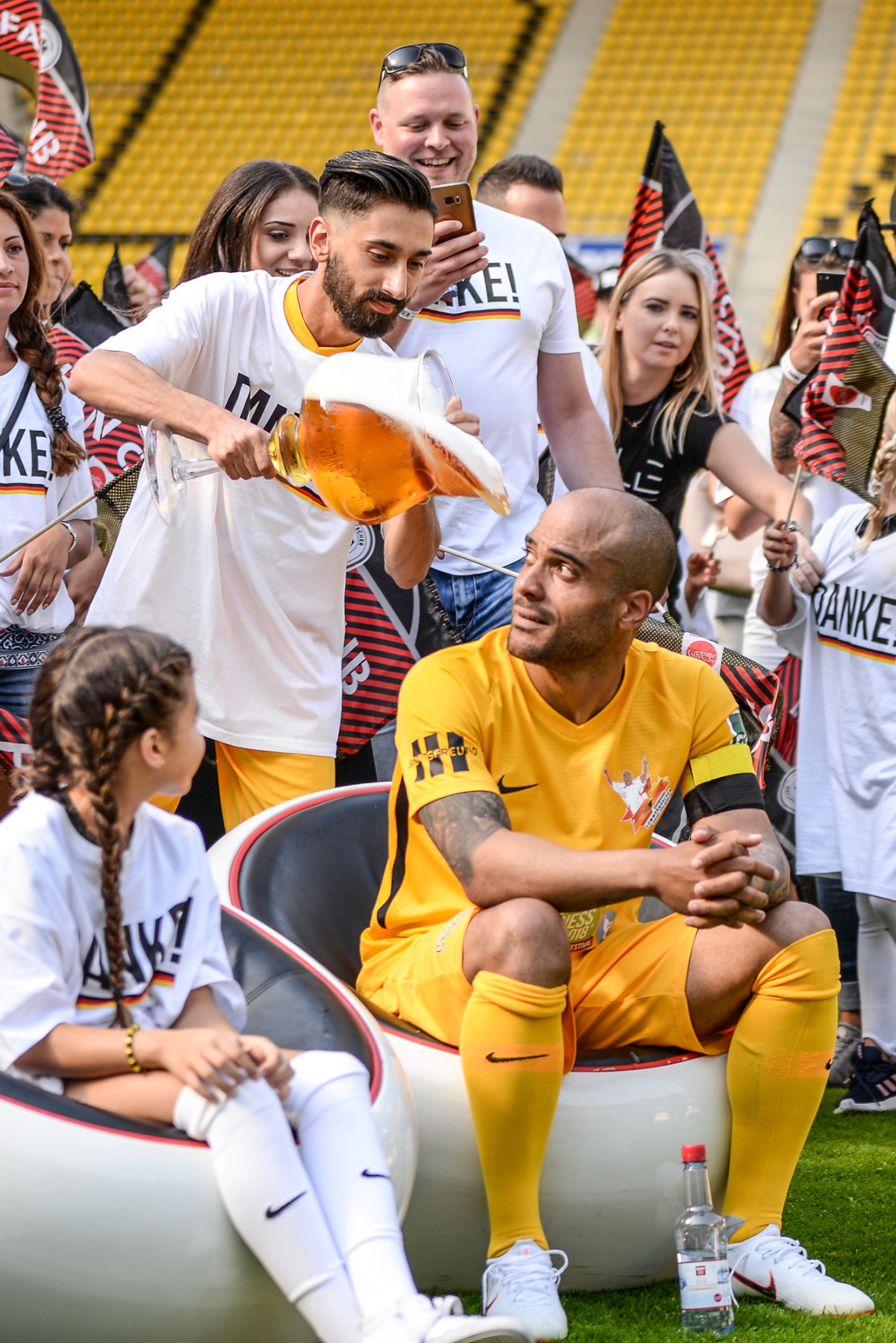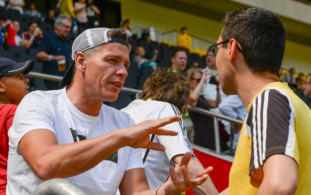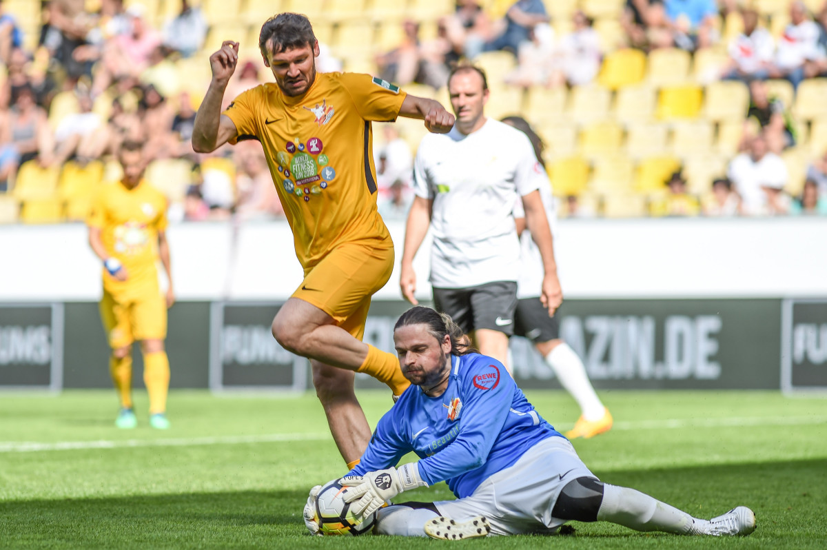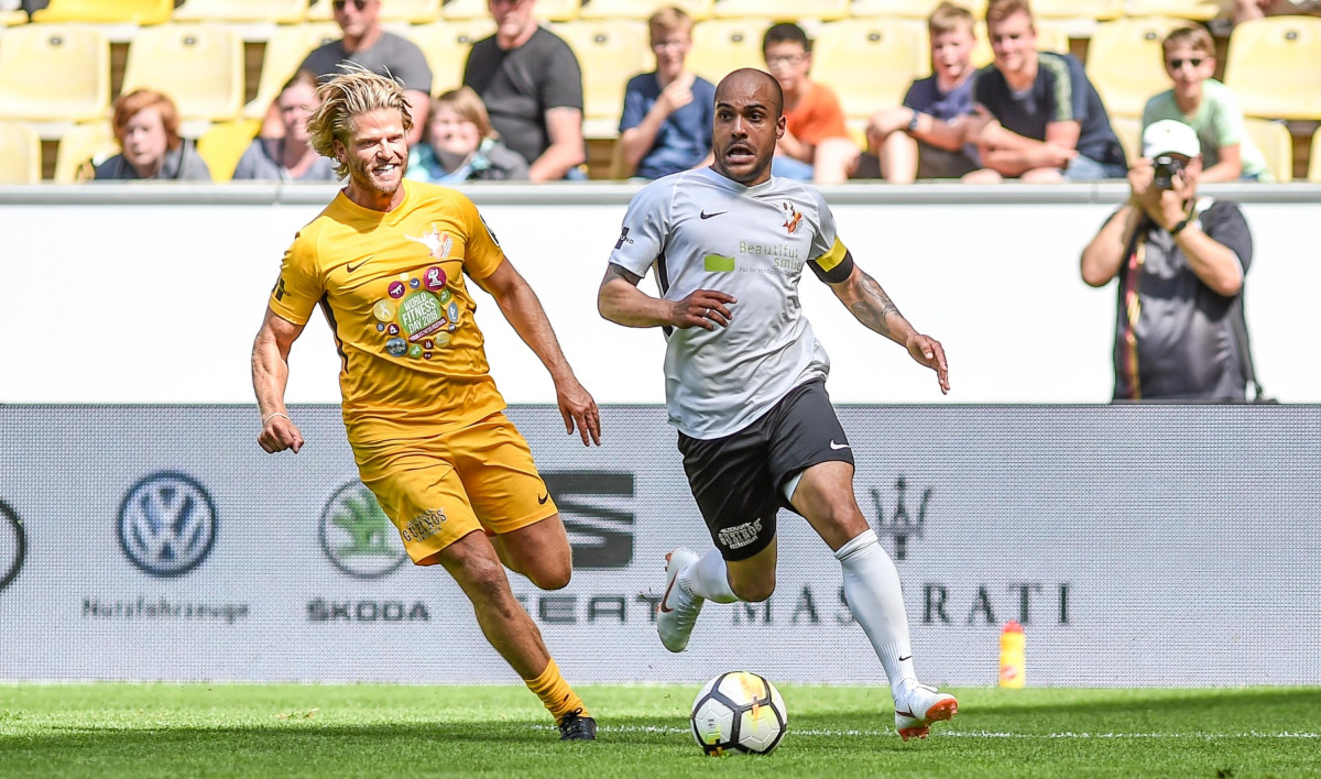 Auf dem Platz ging es dann gleich munter los. Nicht mal eine Minute gespielt und schon zappelte der Ball das erste Mal im Netz. Wie beim denkwürdigen Siegtreffer bei der Heim-WM 2006 in Deutschland, als David Odonkor über die rechte Seite Richtung polnische Eckfahne sprintete, Oliver Neuville bediente und der zum umjubelten 1:0-Siegtreffer einschob, gelang den beiden Ex-Nationalspielern dasselbe Kunststück kurz nach Anpfiff. Im Anschluss verriet Odonkor: "Wir haben vorher drüber gesprochen und wollten das Tor nochmal erzielen. Dass es dann gleich bei der ersten Aktion klappt, hätte ich nicht gedacht." Nur ein paar Minuten später war es David Odonkor selbst, der nach einem Sololauf ins kurze Eck traf. Anschließend entwickelte sich ein unterhaltsames Spiel, während Mario Basler nach einer missglückten Ecke den Videobeweis forderte und Ailton am Spielfeldrand am Grill stand.