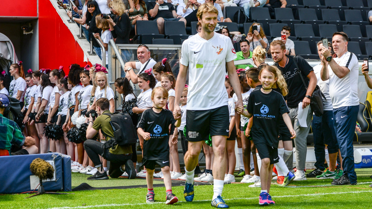 Schon beim Einlaufen der Spieler flossen die ersten Tränen bei David Odonkor. Der ehemalige Nationalspieler und Alemannia-Profi hat sich am Samstag mit einem Abschiedsspiel vor 12.500 Zuschauern auf dem Tivoli verabschiedet. In einem Spiel über 90 Minuten trennten sich das Team "Bundesliga & Friends" mit Spielern wie Dede, Thorsten Legat, Ivan Klasnic oder Hans Sarpei und "Odo's Nationalteam" mit Mario Basler, Christoph Metzelder, Kevin Großkreutz oder Torsten Frings mit einem munteren 11:11-Unentschieden.