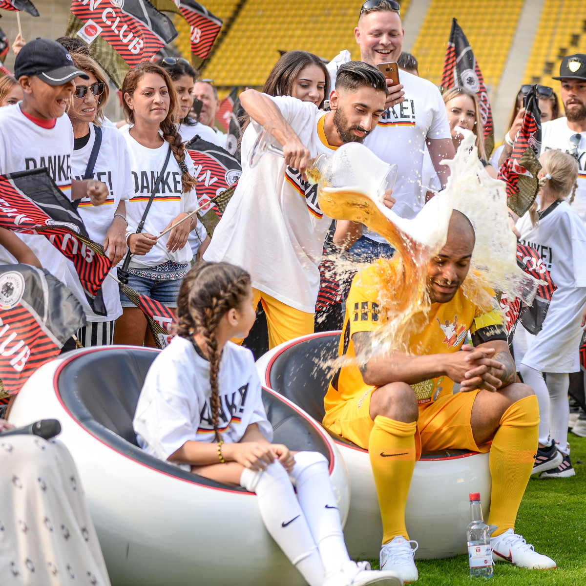 Nach 90 Minuten stand es 11:11 und es ging für den vierfachten Torschützen an diesem Tag, David Odonkor, auf eine Schlussrunde. Seine Frau richtete noch ein paar emotionale Worte an den Flügelflitzer, ehe ein Abschiedsvideo mit Botschaften, unter anderem von Michael Ballack, gezeigt wurde. "Das war heute pure Freude. Wir haben 22 Tore geliefert, die Zuschauer waren gut drauf, die haben uns alle angefeuert", sagte ein bewegter Odonkor.