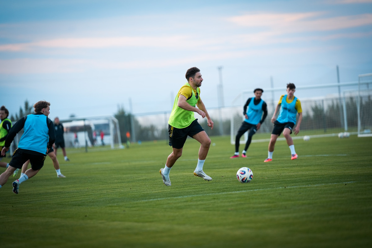 Der zweite volle Tag im Wintertrainingslager begann für die Alemannia bei spürbar frischeren Temperaturen. Nach einer kurzen Aktivierung am Morgen bat Cheftrainer Mersad Selimbegović seine Mannschaft erneut auf den Trainingsplatz. Vor Beginn der Einheit nahm sich der Coach zudem Zeit für Gespräche mit den mitgereisten Fans.
