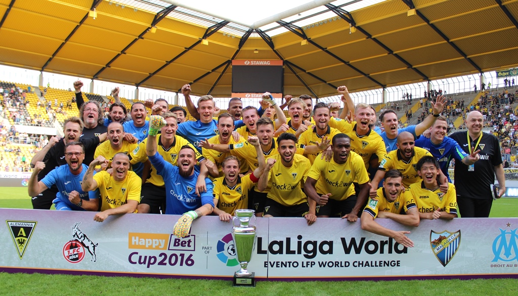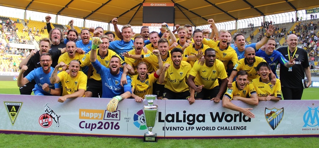 Eine Woche vor dem Ligastart hat sich die Alemannia beim HappyBet Cup in starker Verfassung präsentiert. Durch einen 4:3-Finalerfolg über den FC Malaga sicherte sich die Elf von Fuat Kilic vor 6.437 Zuschauern auf dem Tivoli den Turniersieg im Elfmeterschießen. Platz 3 ging an den 1. FC Köln, der im kleinen Finale mit 2:1 gegen Olympique Marseille die Oberhand behielt.