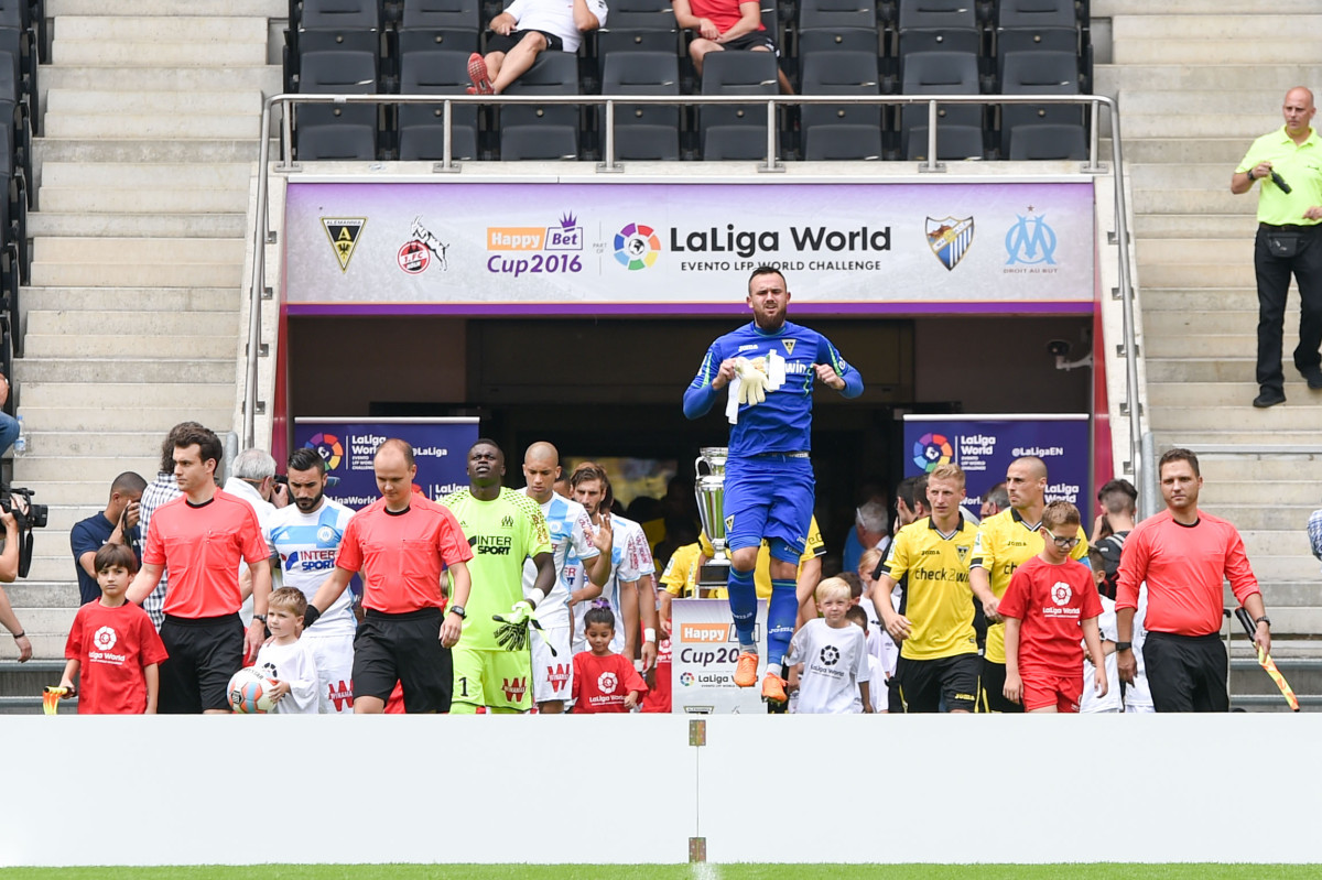 Den Auftakt machten pünktlich um 14.00 Uhr die Teams des 1. FC Köln und des FC Malaga. Der letztejährige Tabellenachte der spanischen Primera Division fand besser in die Partie und ging nach einer Kombination über die rechte Seite durch Fornals Malla in Führung (19.). Köln drängte danach auf den Ausgleich, doch Rudnevs traf mit einer Direktabnahme aus 14 Metern nur den linken Pfosten (31.). Nach 45 Minuten Spielzeit qualifizierte sich der FC Malaga, der ebenfalls noch zwei Aluminiumtreffer zu verzeichnen hatte, mit einem knappen 1:0-Erfolg verdient für das Finale.