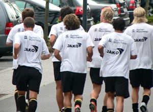 „Bei unserem momentanen Trainingsumfang ist die Hitze natürlich ein Faktor“, sagt Coach Dieter Hecking. Bei zwei langen Einheiten täglich fällt die Regeneration den Profis nicht zuletzt wegen der Temperaturen schwer. Da hilft auch die maximale Flüssigkeitszufuhr nicht viel weiter. „Was wir trinken, schwitzen wir ja sofort wieder aus“, lacht Alex Klitzpera, der ansonsten eine gesunde Einstellung zum Wetter mitbringt: „Was sollen wir uns beklagen, wir müssen bei der Hitze ja auch spielen.“