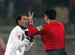 Die Mannschaft war erst spät in der Nacht nach Aachen zurückgekehrt. Es passte zum Verlauf des Abends, dass es auch bei der Doping-Probe nach dem Spiel nicht rund lief. So verließ der Mannschaftsbus erst gegen Mitternacht das Badener Land. Nach der Niederlage, den beiden Sperren für Pechvogel Sergio Pinto und Moses Sichone und dem „Knock Out“ von Sascha Rösler gab es am Dienstag wenigstens beim offensiven Mittelfeldspieler teilweise Entwarnung. Nach dem Zusammenprall mit Aduobe ziert zwar ein schillerndes Veilchen Röslers Gesicht, mit viel Eis und Medikamenten soll die Schwellung aber so weit zurückgehen, dass er am Donnerstag wieder trainieren kann. Daran war am Dienstag allerdings noch nicht zu denken. Die Schwellung ist so stark, dass Rösler das Auge nur wenige Millimeter öffnen kann. „Lieber so ein Veilchen als irgendeine Verletzung am Fuß“, gewann Rösler der Sache etwas Positives ab.