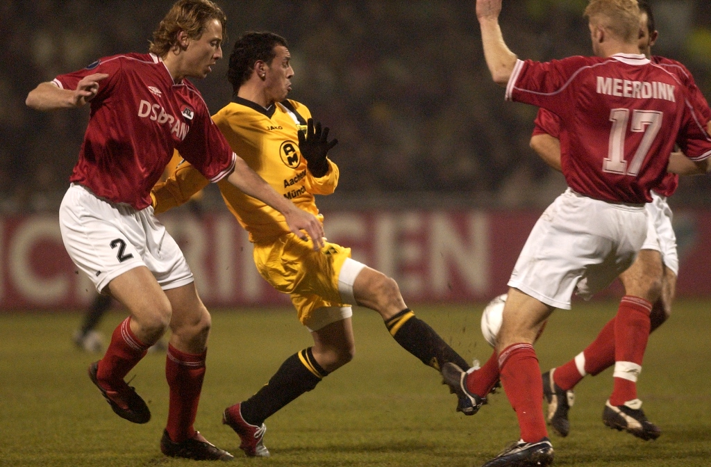 Die Vorzeichen vor der Drittrundenpartie im UEFA-Cup waren klar. Beide Teams brauchten für das Erreichen des Achtelfinals mindestens ein Tor. Dementsprechend offensiv gingen die Mannschaften zu Werke. Im Mittelfeld wurde um jeden Zentimeter gekämpft. Der klare Favorit aus Alkmaar bekam das Spiel mit zunehmender Dauer immer besser in den Griff und Alemannias Schlussmann Stephan Straub musste schon in der Anfangsviertelstunde mehrfach eingreifen. Die Kaiserstädter wurden erst nach einer guten halben Stunde erstmals vor dem AZ-Tor vorstellig. Frank Paulus zog aus 20 Metern ab, Timmer wehrt zur Ecke ab. Der anschließende Eckstoß von Sergio Pinto führt zum 0:1. Alexander Klitzpera verlängerte den Ball auf Erik Meijer, der zum Flugkopfball ansetzte und traf. Alkmaar drückte in der Folgezeit auf den Ausgleich, doch Straub bewahrte die Alemannia gleich mehrfach vor einem Gegentreffer.