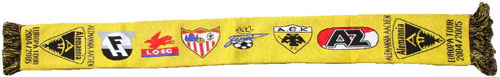 Heute vor fünf Jahren, am 15. Dezember 2004, feierte die Alemannia mit dem 2:0 bei AEK Athen und dem Einzug in die dritte Runde des UEFA-Cups einen der größten Erfolge der Vereinsgeschichte. Zur Erinnerung an die Europapokalauftritte der Alemannia wird der lange vergriffene UEFA-Cup-Schal in limitierter Edition neu aufgelegt und ist ab sofort in den Alemannia-Shops im Tivoli und in der Pontstraße erhältlich. Zudem wird im neuen Jahr in den musealen Bereichen im Alemannia-Shop und in den Vorräumen im Tivoli ausführlich an die Europatour der Alemannia erinnert.