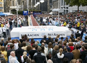 Fans aus ganz Deutschland und aller Welt können das NetAachen-Domspringen auch in diesem Jahr wieder LIVE im TV und Internet verfolgen. center.tv Aachen überträgt ab 17 Uhr unter hohem technischen Aufwand über vier Stunden live. „Das Domspringen auf dem Katschhof zählt zu den Top-Events in Aachen“, so center.tv Geschäftsführer Jens Kemper. „Wir sind stolz, dieses Meeting bereits zum zweiten Mal live mit unserem Partner NetAachen übertragen zu können.“ Studioleiter Philip Welkisch ergänzt: „Die Sportberichterstattung aus der Region ist eine wichtige Säule in unserem Programm. Da darf die Übertragung des NetAachen-Domspringens natürlich nicht fehlen.“ So überträgt auch center.tv Köln das NetAachen-Domspringen live. Im Internet können Zuschauer das NetAachen-Domspringen unter www.aachen.center.tv und www.netaachen.de/domspringen weltweit live mitverfolgen. „Das NetAachen-Domspringen ist beste Werbung für die Leichathletik in Deutschland“, freut sich Michael Mronz vom Veranstalter MMP.