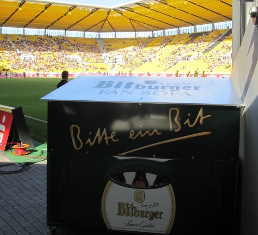 Bitburger FAN-SOFA erlebt Ihr das Spiel auf Höhe der Grasnarbe!