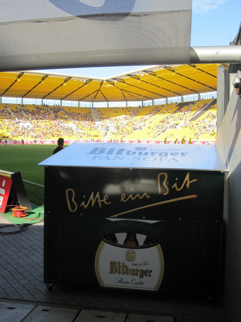 Aufgepasst liebe Fußballfans! Bitburger ermöglicht Euch ein einzigartiges Fußball-Erlebnis. Verfolgt das Montagabendspiel in der Regionalliga-West, Alemannia Aachen gegen Sportfreunde Lotte am Montag, 08.09.2014, einmal aus einer ganz besonderen Sicht: Auf dem Bitburger FAN-SOFA erlebt Ihr das Spiel auf der Höhe der Grasnarbe!