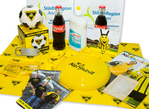 Während sich die neuen Aleminis u.a. auf eine Frisbeescheibe und das aktuelle Aleminis-Magazin freuen können, erhalten erwachsene Mitglieder eine Alemannia-Spardose und weitere Kleinigkeiten. Von Postkarten, über Süßigkeiten oder Luftballons ist einiges im Starterpaket enthalten.