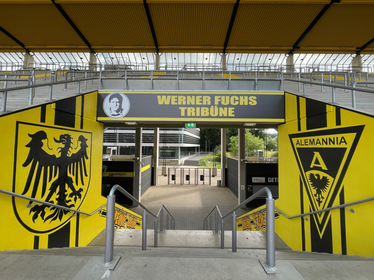 Die Yellow Connection ist in der Sommerpause nicht untätig geblieben. Mit geballter Kraft hat die Fangruppierung Tage und Wochen damit verbracht, der Werner-Fuchs-Tribüne mit eigenen Mitteln noch mehr schwarz-gelbe Identifikation zu verleihen. Die Blockeingänge sind nun gelb gestrichen, das Alemannia- und das Stadt-Wappen zieren die Wände. Auch einige auf dem Tivoli bekannte Fangesänge finden ihren Platz auf den Treppenaufgängen der heimischen Tribüne.