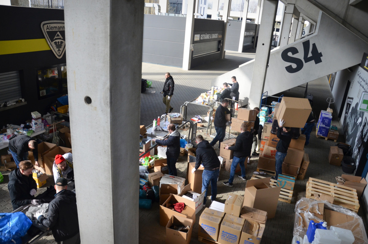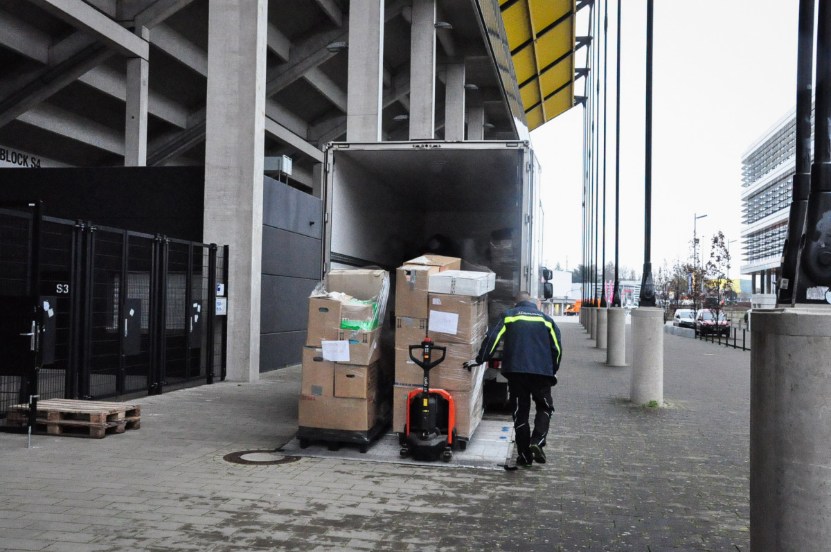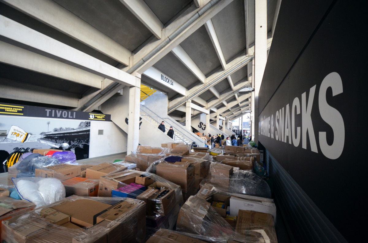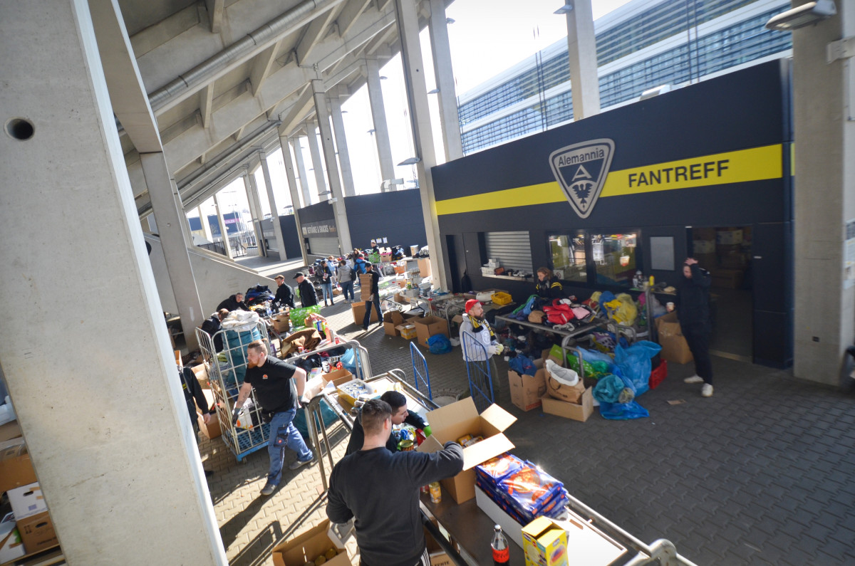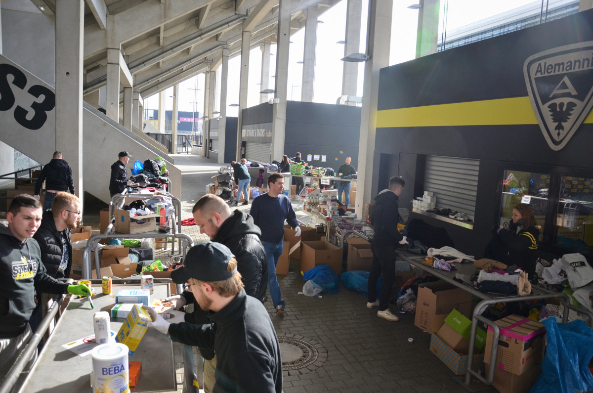 Haltbare Lebensmittel, Hygieneartikel, Medikamente, Erste-Hilfe-Artikel, Kleidung – all das und noch vieles mehr konnten Alemannia-Fans, aber auch alle anderen von der Aktion begeisterten Helfer seit Anfang März in den beiden Fanshops sowie am Fantreff unter der Werner-Fuchs-Tribüne abgeben. Und die Resonanz war mehr als hoch: „Im Tivoli-Fanshop haben sich die Sachspenden in den ersten Tagen fast bis unter die Decke gestapelt. Wir waren beeindruckt, wie viele Menschen unserem Aufruf gefolgt sind“, berichtet Görtges. Zusammengekommen sind am Ende ganze 66 Paletten voller Hilfsmaterial, verteilt auf zwei 40-Tonner. Da ließen sich die beteiligten Parteien auch nicht von einer anfänglichen Hiobsbotschaft aus dem Konzept bringen – der ursprüngliche Abnehmer vor Ort hatte kurzfristig abgesagt. „Wir haben dann intensiv nach einer neuen Lösung gefahndet, die wir zum Glück jetzt gefunden haben“, zeigt sich der Vizepräsident sichtlich erleichtert.