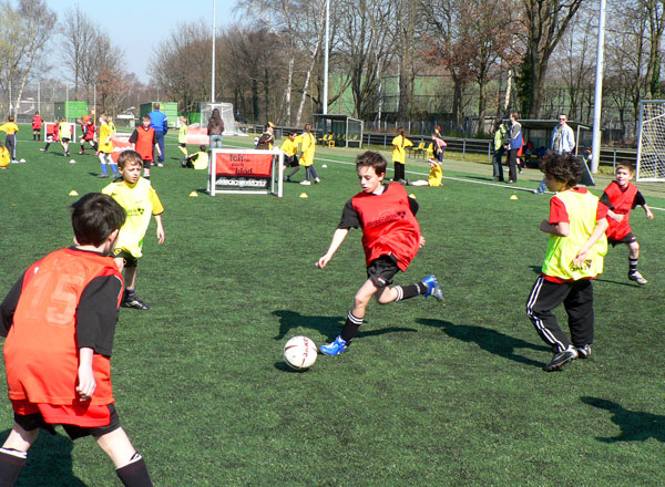 „Wir sind in diesem Jahr zum ersten mal dabei“, verrät Maria Wieder, Lehrerin der Grundschule Hermanstraße in Stolberg. Mit ihrem Team, den Herman-Girls, ist sie extra zum Tivoli gekommen. „Bei diesem großen Turnier mitzumachen, war für unsere Schüler sehr motivierend. Sie haben in den letzten Wochen immer hart trainiert und sich sehr auf heute gefreut.“ Auch Laurenz von den Torreichen 4 der Gemeinschaftsgrundschule Gut Kullen war begeistert bei der Sache: „Natürlich wissen wir, dass es starke Gegner gibt, aber trotzdem rechnen wir uns gute Chancen aus!“