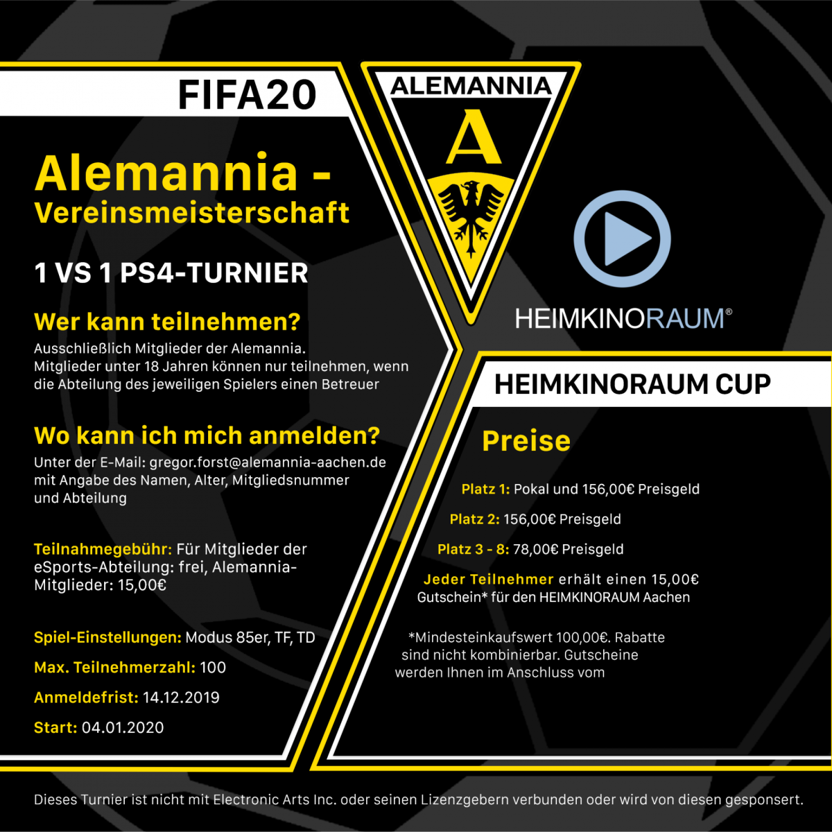 Die Antrittsgebühr beträgt 15 Euro für jedes Alemannia-Mitglied, Mitglieder der eSports-Abteilung können kostenlos mitspielen.