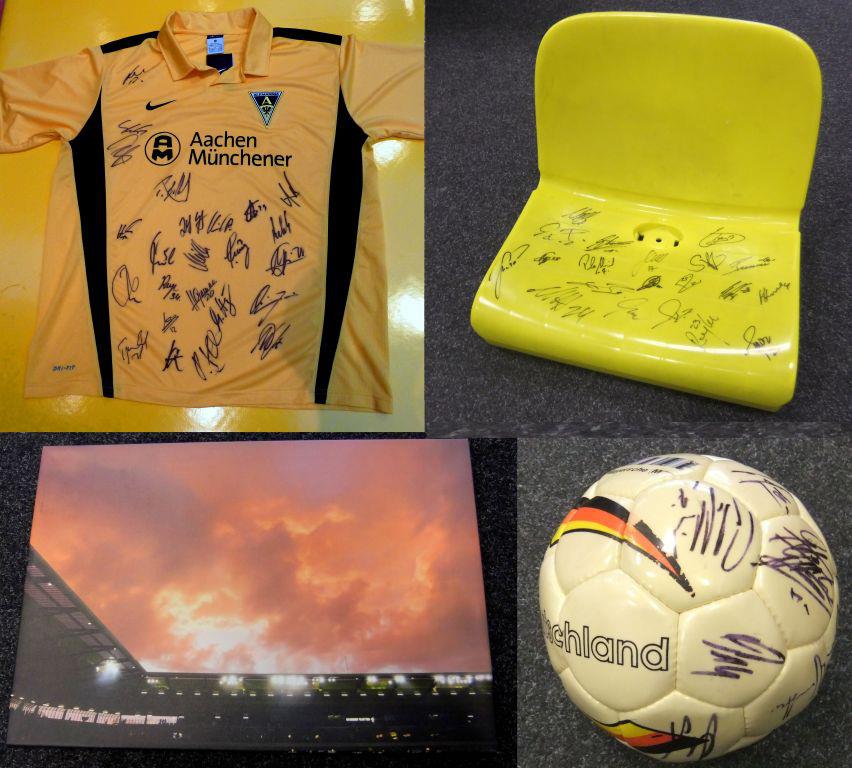 Infolge der ersten Auktionen haben sich weitere Alemannia-Fans gemeldet, die ihre Dachböden durchforstet und weitere Stücke zur Verfügung gestellt haben. Auch der Erlös dieser Versteigerungen kommt natürlich in vollem Umfang dem Rettungskonto der Alemannia zugute.