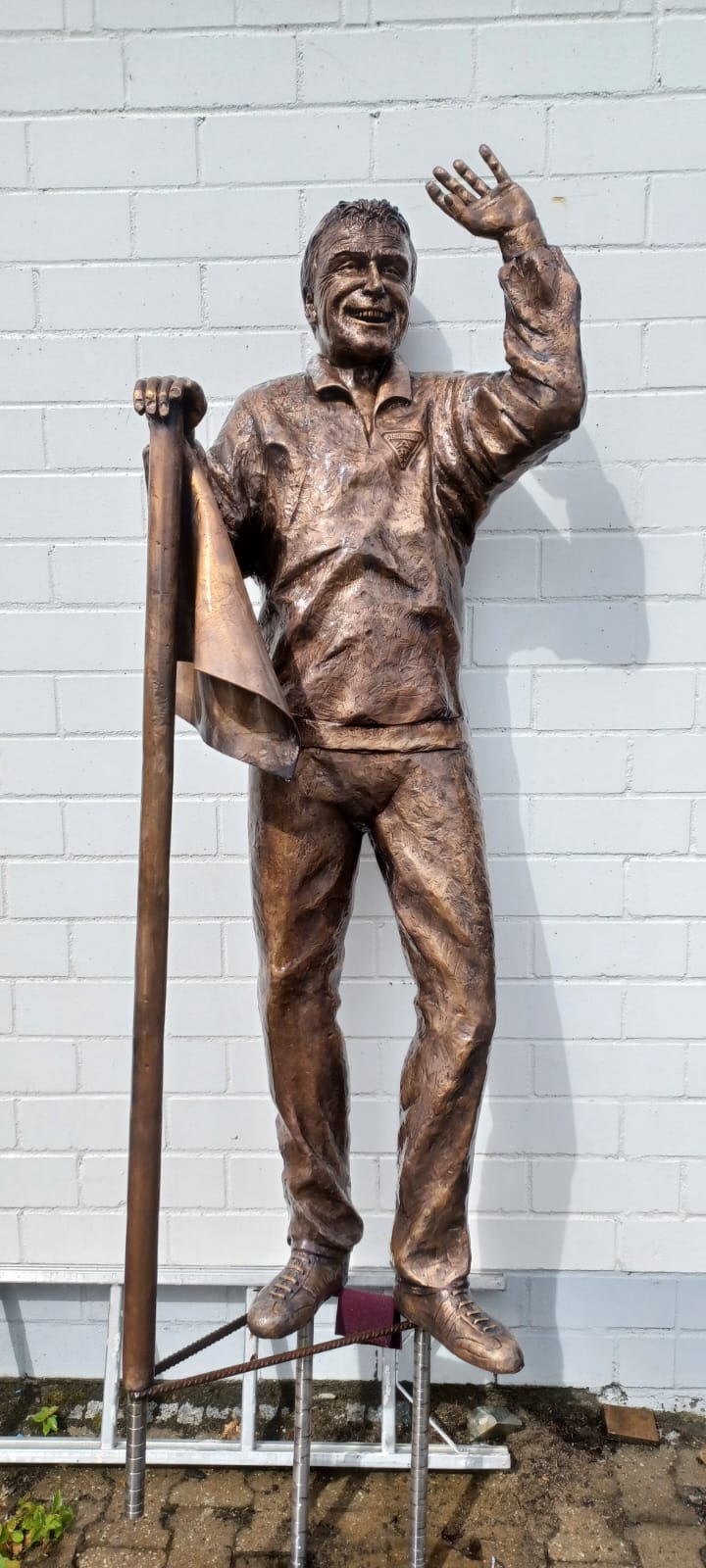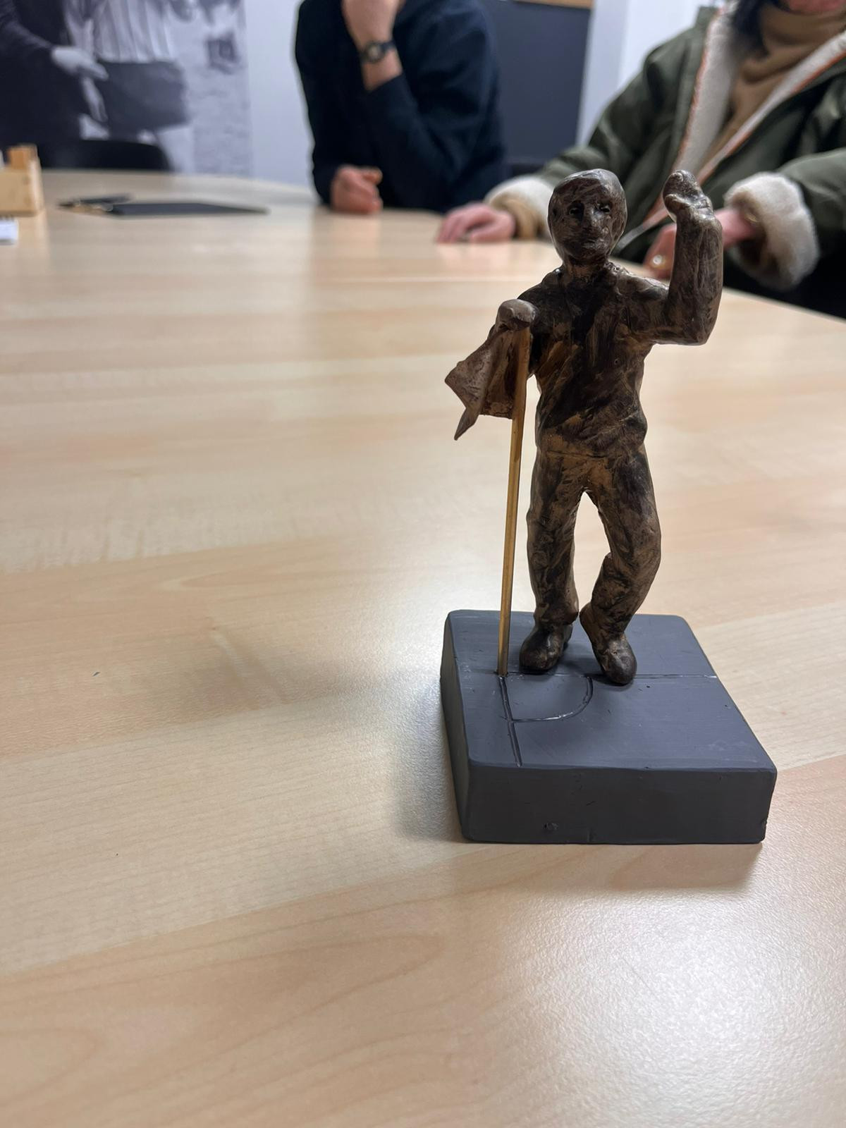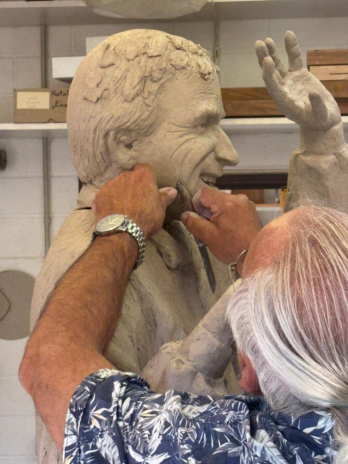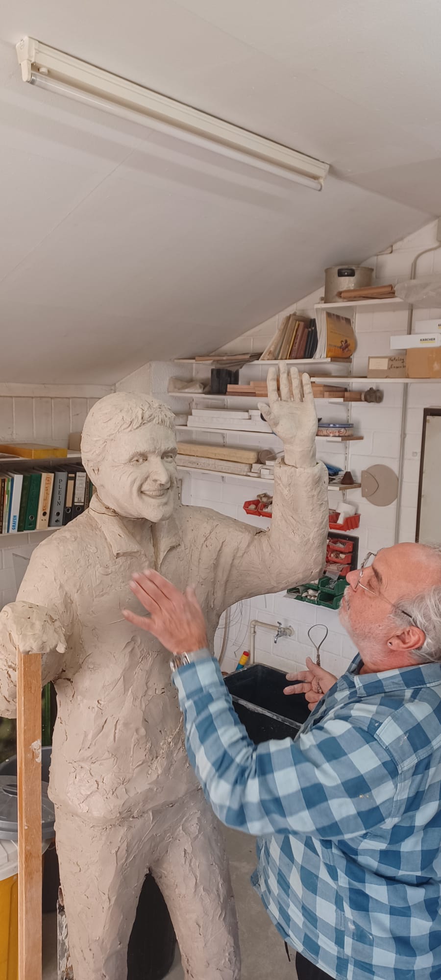 Alles begann im Herbst 2024 mit einem Treffen auf dem Tivoli, als sich der Arbeitskreis zum ersten Mal zusammensetzte. Bildhauer Klaus Gehlen hatte eigens eine kleine Wachsfigur von Werner Fuchs präsentiert, um die Richtung seiner Arbeit zu demonstrieren. Danach begann in seinem Atelier in der Eifel die monatelange Feinarbeit der lebensgroßen Figur. Regelmäßig besuchte der Arbeitskreis den Künstler in Monschau, um Details abzustimmen – besonders die Gesichtszüge, Augen, Haare und der charakteristische Ausdruck von Werner Fuchs sollten so authentisch wie möglich wiedergegeben werden. Erst als die Familie Fuchs persönlich ihre Zustimmung gab, war klar: Das ist er.