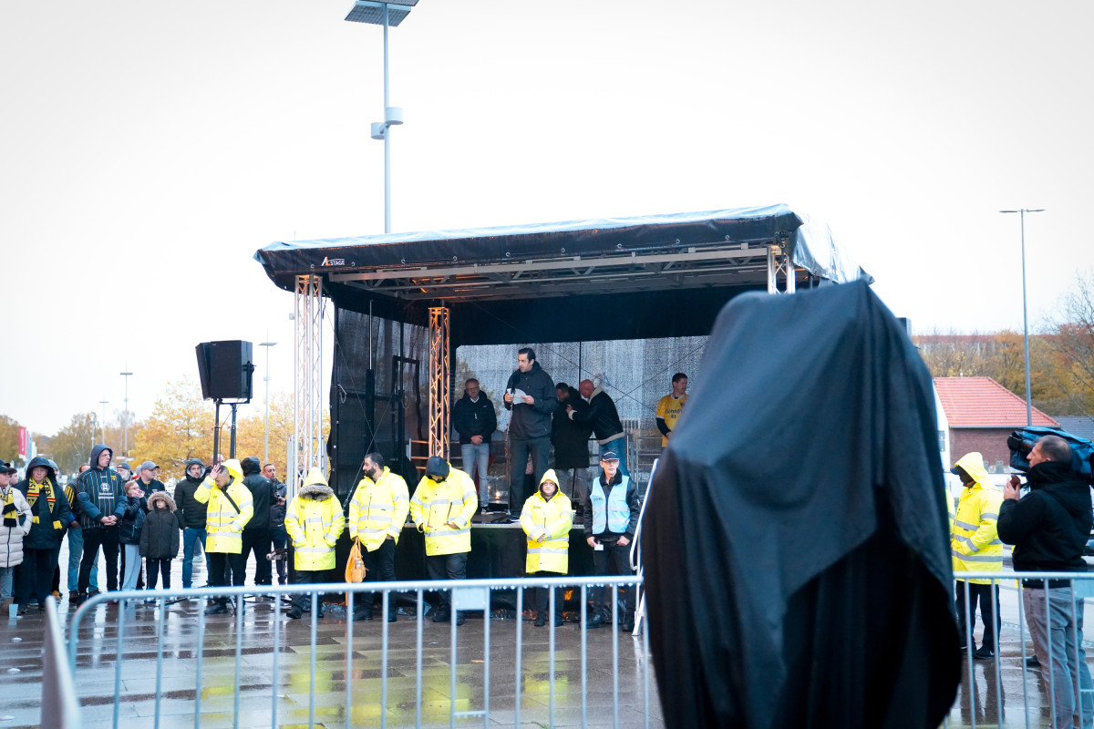 Auch die Standortfrage war früh geklärt. Dank der Unterstützung der ASB und des ALRV, die das Grundstück ohne Zögern freigaben, konnte die Statue ihren Platz auf dem Vorplatz finden. Feuerwehrzufahrten und Rettungswege wurden berücksichtigt und so stand der Enthüllung nichts mehr im Weg.